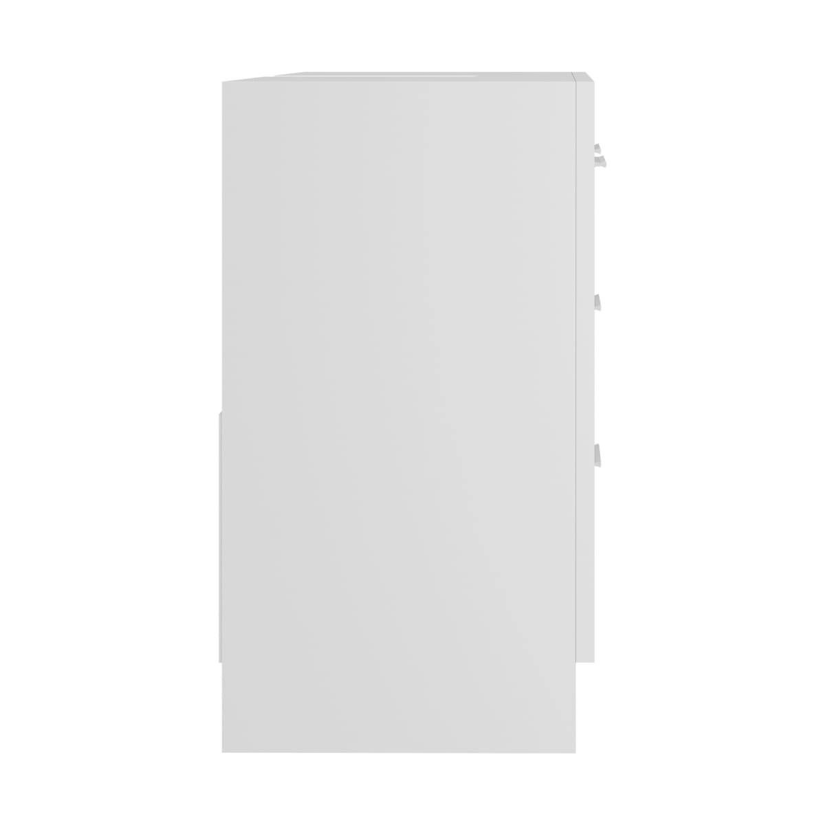 Con este armario para lavabo, puedes crear espacio de almacenamiento adicional para tu baño con un aspecto llamativo y ordenado. Las líneas limpias y el diseño elegante se integran perfectamente en tu baño. Este armario está hecho de madera contrachapada, por lo que es robusto y estable. El armario de almacenaje tiene 1 compartimento y 3 cajones, que ofrecen diversas opciones de almacenamiento y un plus de espacio para guardar cosas en el baño. La parte superior del armario es ideal para colocar el lavamanos. Además, el armario se limpia fácilmente con un paño húmedo. Ten en cuenta que el lavabo no está incluido en la entrega.