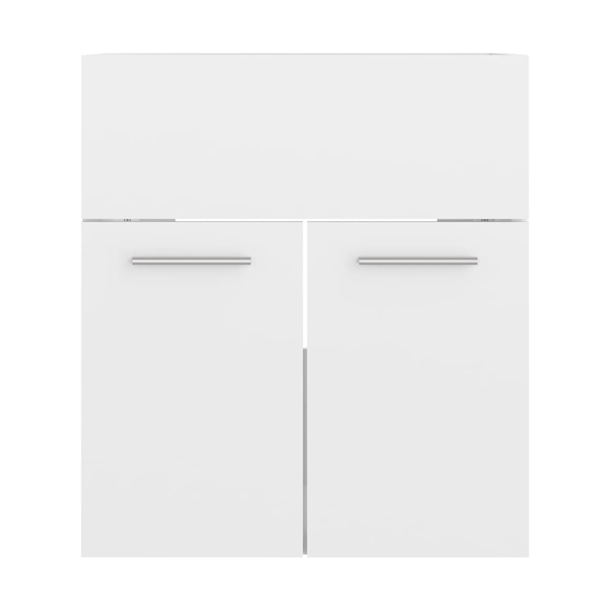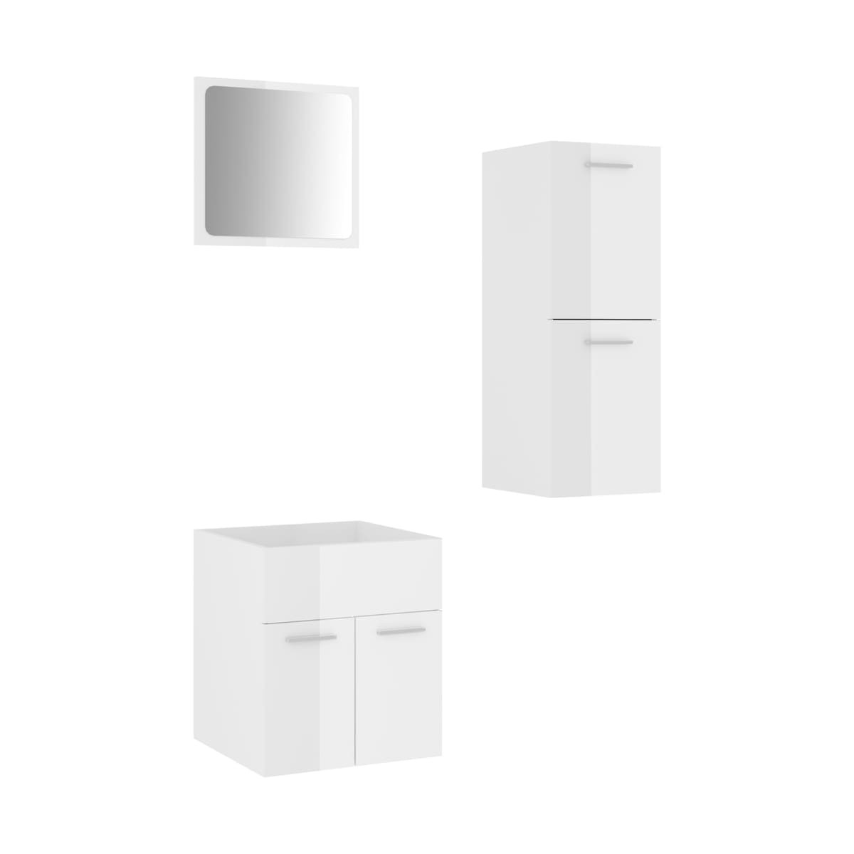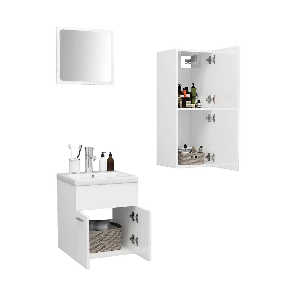 Con este elegante set de muebles de baño, podrás crear espacio de almacenamiento extra para tu baño con un look llamativo y ordenado. Diseño elegante: Las líneas limpias y el diseño elegante se integran perfectamente en el baño. El conjunto de muebles consta de un armario de lavabo, un armario bajo y un espejo. El elegante armario de lavabo tiene 1 compartimento, y la parte superior es ideal para colocar el lavabo. El armario bajo cuenta con 2 compartimentos, que ofrecen un amplio espacio para guardar artículos en tu baño. El espejo también agrega un look excelente a la decoración de tu hogar. Además, este juego de baño es fácil de limpiar con un paño húmedo. Nota: El fregadero, grifo y desagüe no están incluidos en la entrega.