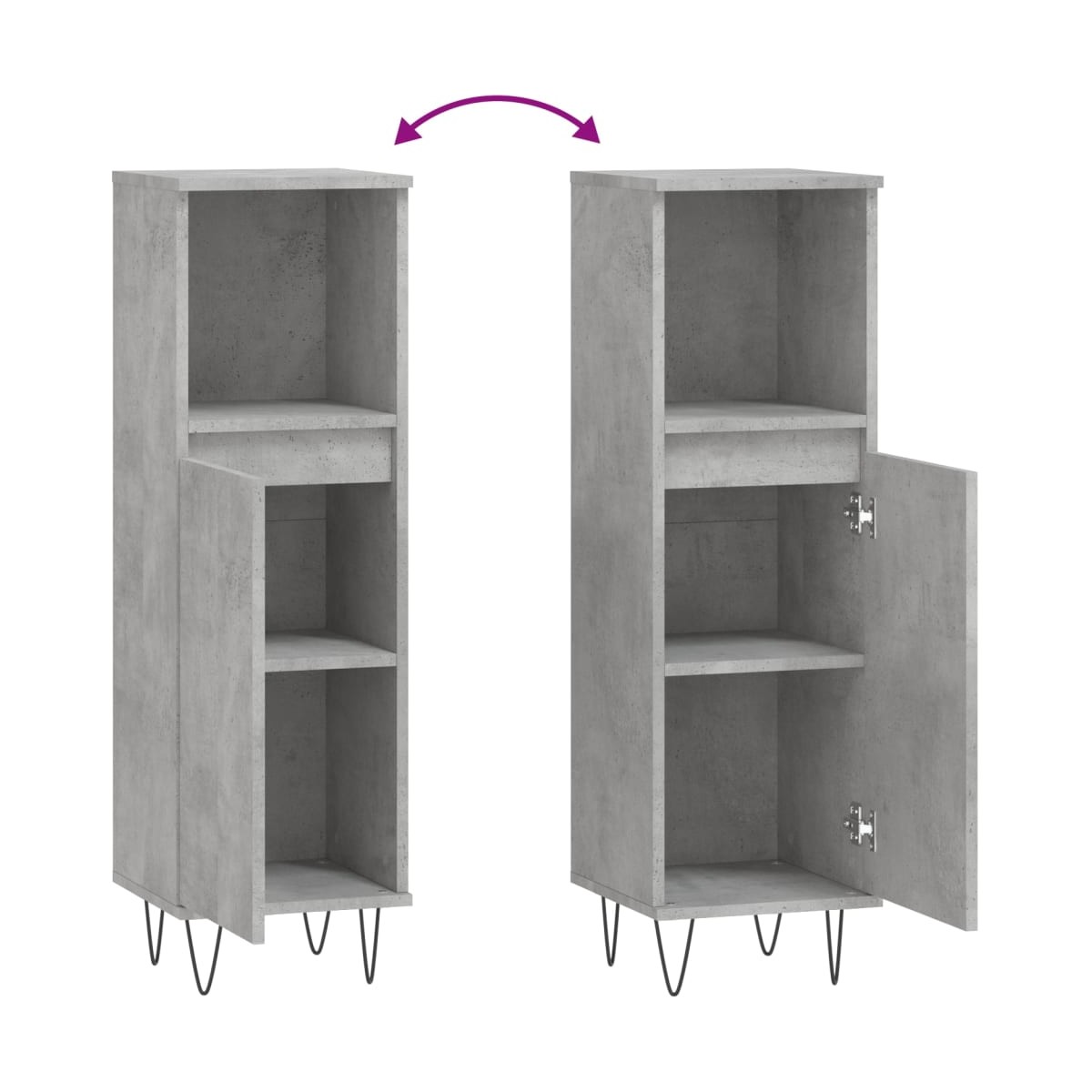 Este armario de baño está destinado a ser un gran aporte para el cuarto de baño, ¡le dará un aspecto ordenado y llamativo! Material duradero: La madera contrachapada tiene una calidad excepcional, con una superficie lisa y también cuenta con fuerza, estabilidad y resistencia a la humedad.Amplio espacio de almacenaje: El mueble de baño tiene 2 compartimentos con puerta y 1 estante abierto, por lo que ofrece diversas opciones de almacenaje y espacio adicional para guardar objetos en el baño.Instalación flexible de la puerta: Puedes instalar la puerta en el lado izquierdo o derecho, según prefieras.Patas de hierro: Las patas de hierro dan un estilo industrial a la casa, además de garantizar la estabilidad del mueble de almacenaje para el baño. Advertencia:Para evitar que vuelque, este producto debe usarse con el dispositivo de fijación a la pared incluido.