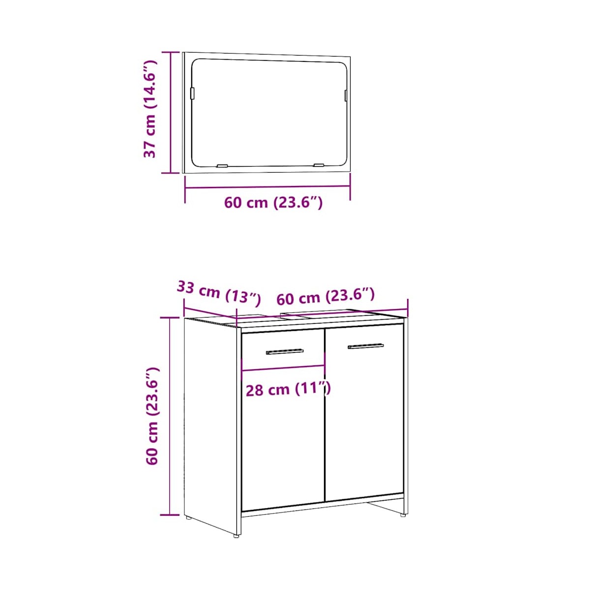 - Dimensiones del mueble de baño: 60 x 33 x 60 cm (largo x ancho x alto)