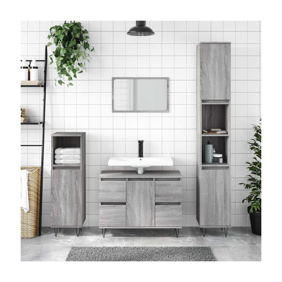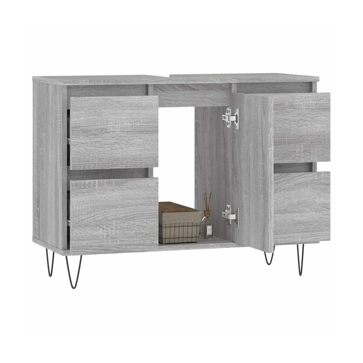Este armario de baño está destinado a ser un gran aporte para el cuarto de baño, ¡le dará un aspecto ordenado y llamativo! Material duradero: La madera contrachapada tiene una calidad excepcional, con una superficie lisa y también cuenta con fuerza, estabilidad y resistencia a la humedad.Amplio espacio de almacenaje: El mueble de baño tiene 1 compartimento con puerta y 4 cajones, por lo que ofrece diversas opciones de almacenaje y un plus de espacio para guardar objetos en el baño.Instalación flexible de la puerta: Puedes instalar la puerta en el lado izquierdo o derecho, según prefieras.Patas de hierro: Las patas de hierro dan un estilo industrial a la casa, además de garantizar la estabilidad del mueble de almacenaje para el baño. Advertencia:Para evitar que vuelque, este producto debe usarse con el dispositivo de fijación a la pared incluido.