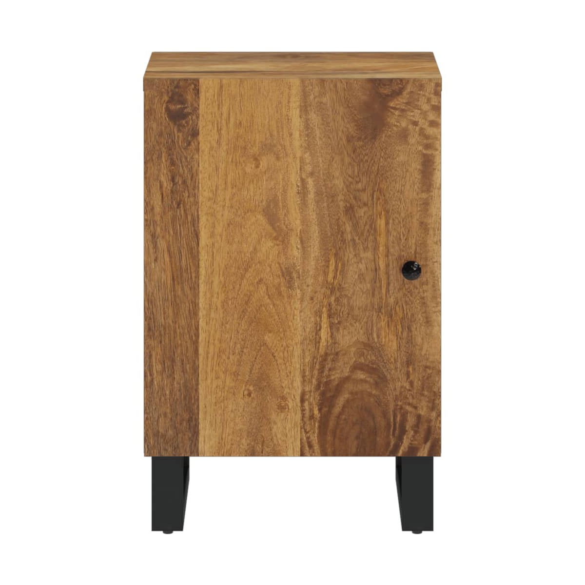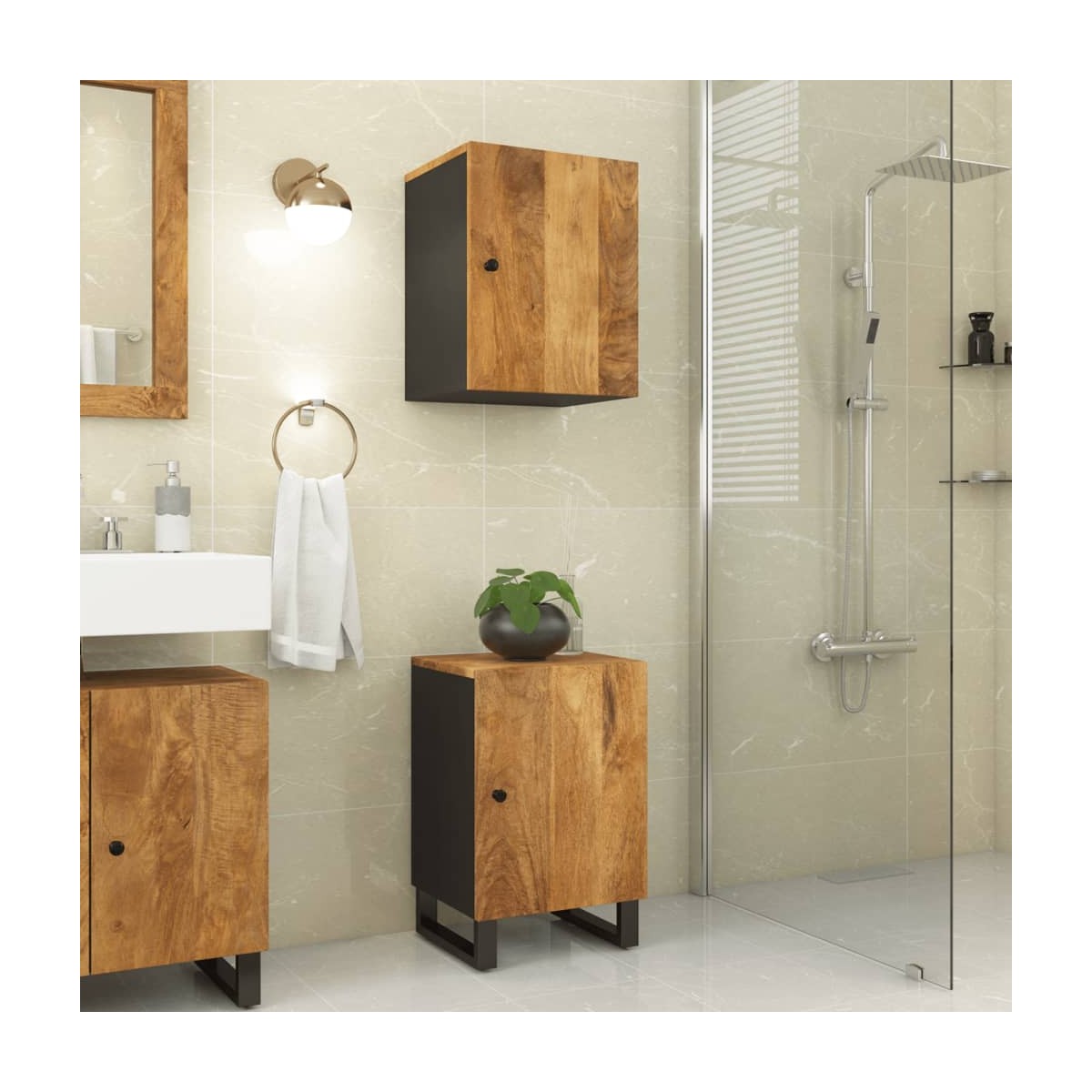 Este armario de baño es una elección genial para el baño, para que esté ordenado y organizado. Madera maciza de mango: Este mueble de baño está hecho de madera maciza de mango combinada con madera contrachapada. La madera maciza de mango es una madera tropical, dura y resistente, que sirve para hacer muebles robustos. Las bonitas vetas de la madera hacen que cada mueble sea ligeramente diferente al resto.Amplio espacio de almacenaje: El mueble de baño tiene 2 compartimentos, que ofrecen diversas opciones de almacenaje y espacio adicional para guardar objetos en el baño.Patas estables: Las patas de hierro del mueble de lavabo garantizan su solidez y estabilidad.Puerta flexible: Puedes instalar la puerta tanto en el lado izquierdo como en el derecho según lo que necesites. Advertencia:Para evitar que vuelque, este producto debe usarse con el dispositivo de fijación a la pared incluido. Información útil:Cada artículo es único, con variaciones de color y grano. La entrega es aleatoria garantizando la exclusividad y la individualidad del producto.