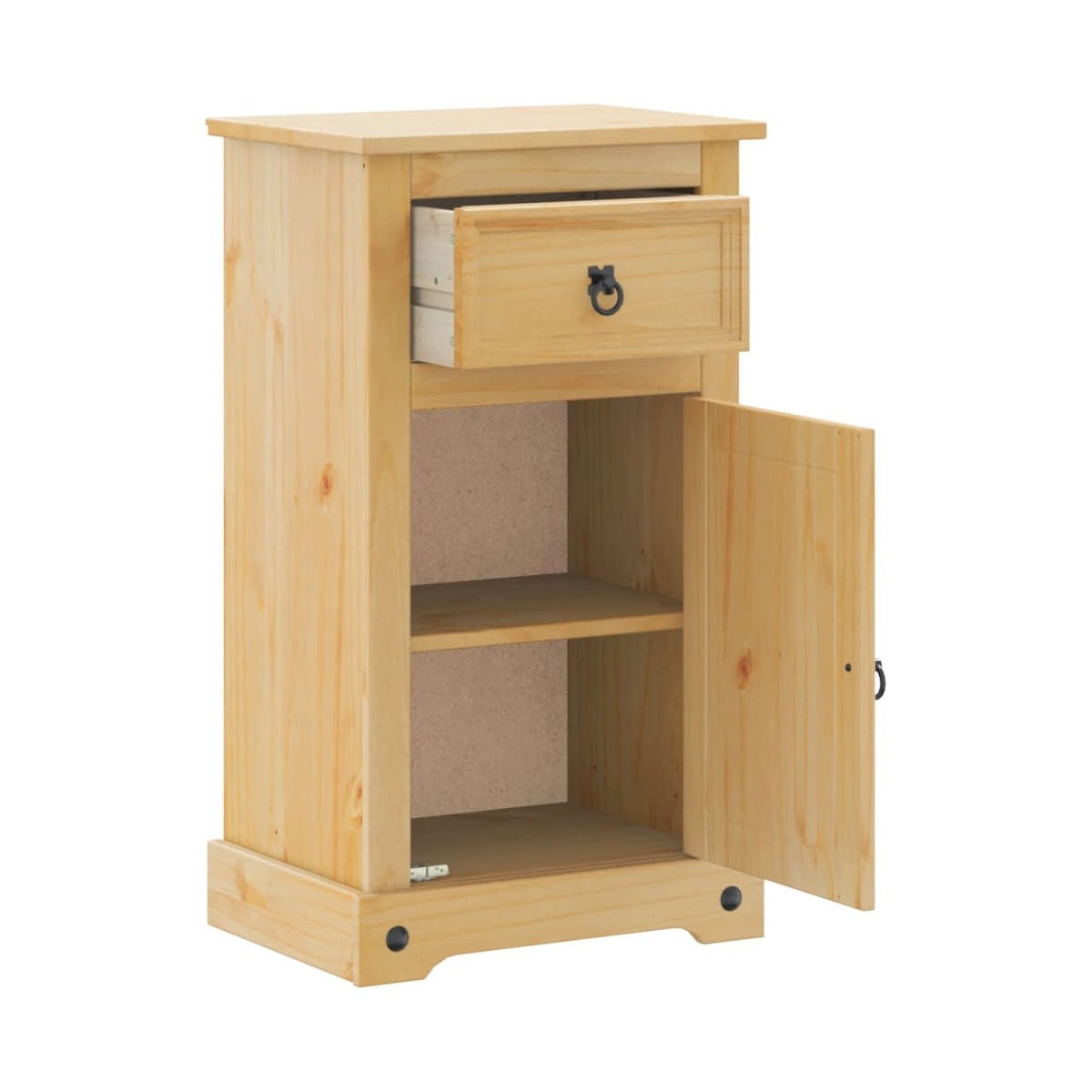 - Material: Madera maciza de pino con acabado encerado de miel, madera de ingeniería, metal