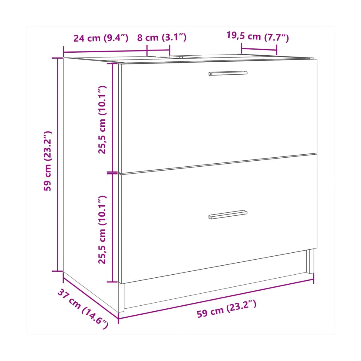 - Dimensiones: 59 x 37 x 59 cm (ancho x profundo x alto)