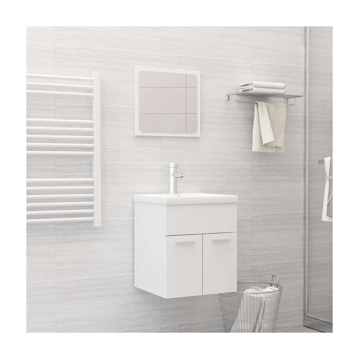 Con este elegante set de muebles de baño, podrás crear espacio de almacenamiento extra para tu baño con un look llamativo y ordenado. Diseño elegante: Las líneas limpias y el diseño elegante se integran perfectamente en el baño. El conjunto de mobiliario, compuesto por espejo y armario, está hecho de madera contrachapada duradera y estable. Este elegante armario cuenta con 1 compartimento y 2 puertas, que ofrecen un amplio espacio de almacenamiento para guardar artículos en el baño. La parte superior del armario es ideal para colocar el lavabo. El espejo también agrega una apariencia excelente a la decoración de tu hogar. Además, este juego de cuarto de baño es fácil de limpiar con un paño húmedo. Ten en cuenta que el lavabo no está incluido en la entrega.