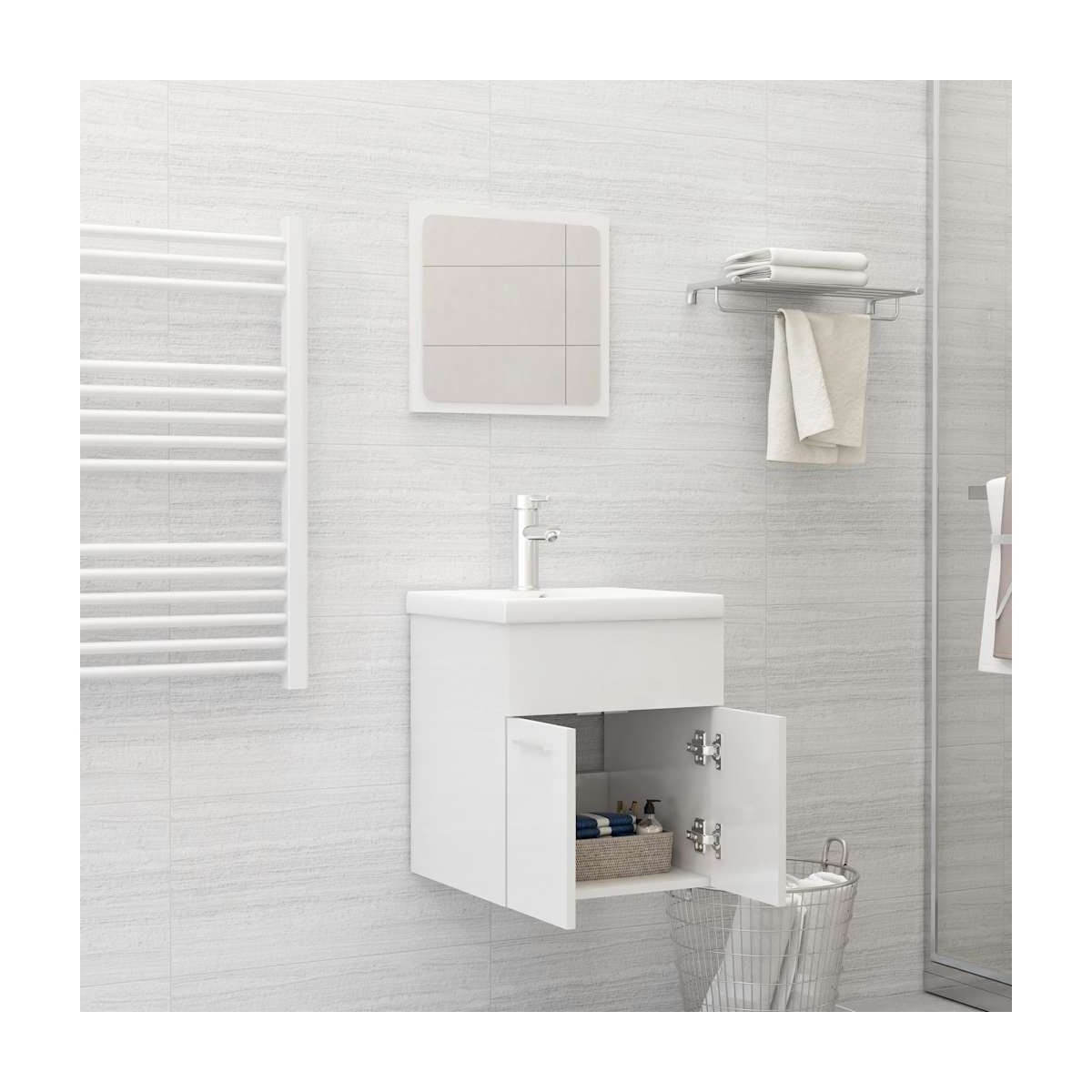 Con este elegante set de muebles de baño, podrás crear espacio de almacenamiento extra para tu baño con un look llamativo y ordenado. Diseño elegante: Las líneas limpias y el diseño elegante se integran perfectamente en el baño. El conjunto de mobiliario, compuesto por espejo y armario, está hecho de madera contrachapada duradera y estable. Este elegante armario cuenta con 1 compartimento y 2 puertas, que ofrecen un amplio espacio de almacenamiento para guardar artículos en el baño. La parte superior del armario es ideal para colocar el lavabo. El espejo también agrega una apariencia excelente a la decoración de tu hogar. Además, este juego de cuarto de baño es fácil de limpiar con un paño húmedo. Ten en cuenta que el lavabo no está incluido en la entrega.