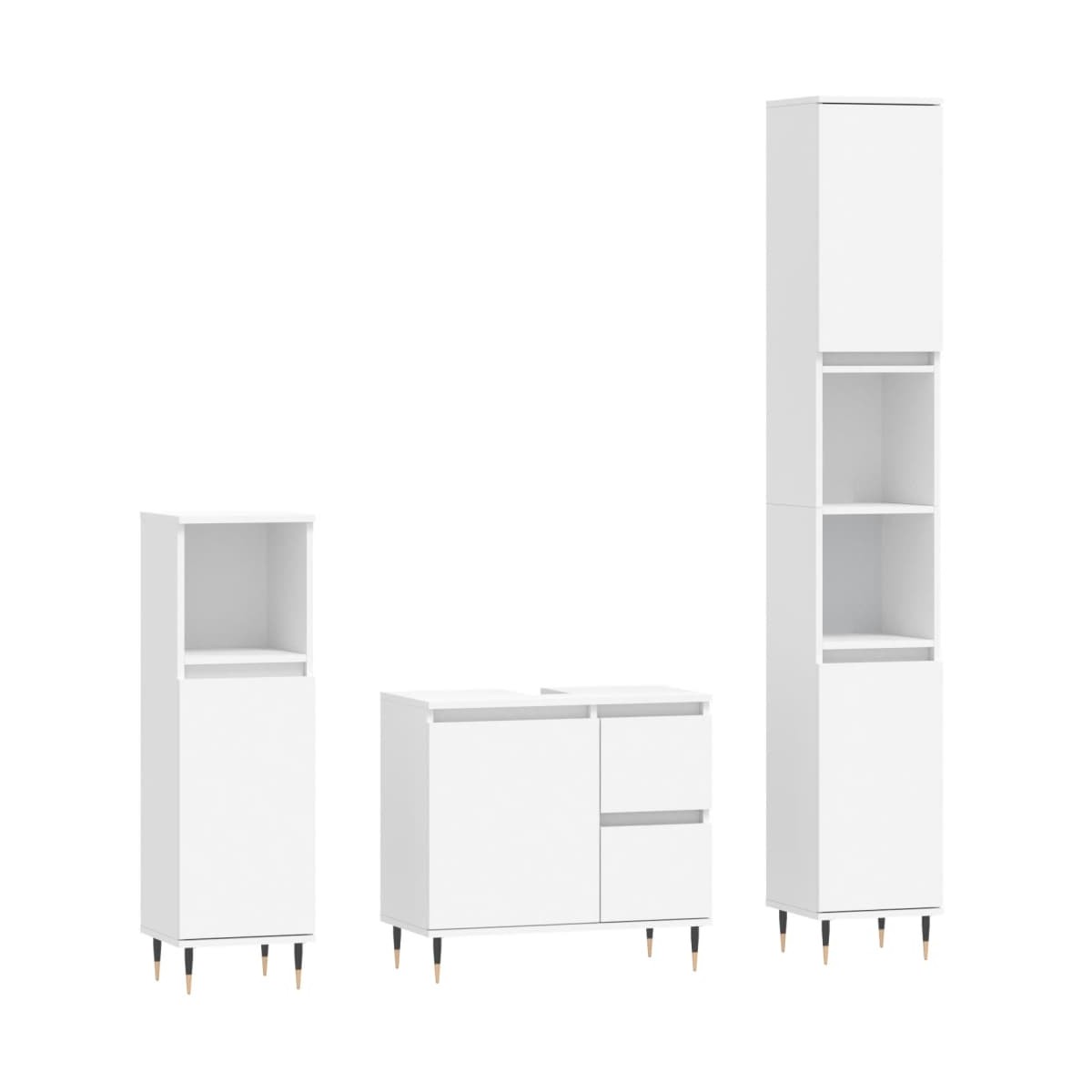 Este set de muebles de baño a la moda está destinado a ser un aporte excelente para el baño, ¡lo que da un aspecto ordenado y llamativo! Material duradero: La madera de ingeniería tiene una calidad excepcional, con una superficie lisa y también cuenta con fuerza, estabilidad y resistencia a la humedad. Patas de hierro: Las patas de hierro añaden un estilo moderno y tranquilo a la casa, además de garantizar su estabilidad.Amplio espacio de almacenaje: El mueble de baño ofrece diversas opciones de almacenaje y un amplio espacio para que puedas guardar objetos en el baño. Diseño práctico: La parte superior del mueble del lavabo es ideal para colocar el lavamanos. Advertencia:Para evitar que vuelque, este producto debe usarse con el dispositivo de fijación a la pared incluido. Información útil:El lavabo no está incluido en la entrega.Los tornillos y los tacos para el interior de la pared no están incluidos. Recomendamos encontrar y utilizar tornillos y tacos adecuados específicamente para las paredes. Si no estás seguro, puedes consultar con un profesional. Lee y sigue cada paso de las instrucciones.