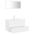 Este elegante juego de muebles de baño, que consta de un armario de lavabo, un lavabo empotrado y un espejo, es una combinación perfecta para tu baño o aseo con un aspecto llamativo y ordenado. El armario de lavabo es de madera contrachapada, lo que lo hace robusto y estable. El armario tiene 1 cajón, que ofrece un amplio espacio de almacenamiento para guardar artículos en tu baño. Encaja perfectamente debajo del lavabo y hace que el almacenamiento en el baño sea bastante práctico. Hecho de cerámica, el lavabo no solo puede servir como artículo para el uso diario, sino también como adorno en tu casa. Gracias a su diseño vanguardista y moderno, este lavabo definitivamente se adaptará a cualquier decoración. Un rebosadero también está equipado para hacer salir el agua cuando se llena demasiado. Su superficie acristalada aporta un diseño moderno pero elegante. El espejo también agrega un look excelente a la decoración de tu hogar. Además, este juego es fácil de limpiar con un paño húmedo. Ten en cuenta que el grifo y el escurridor de empuje con función de desbordamiento están incluidos en la entrega.