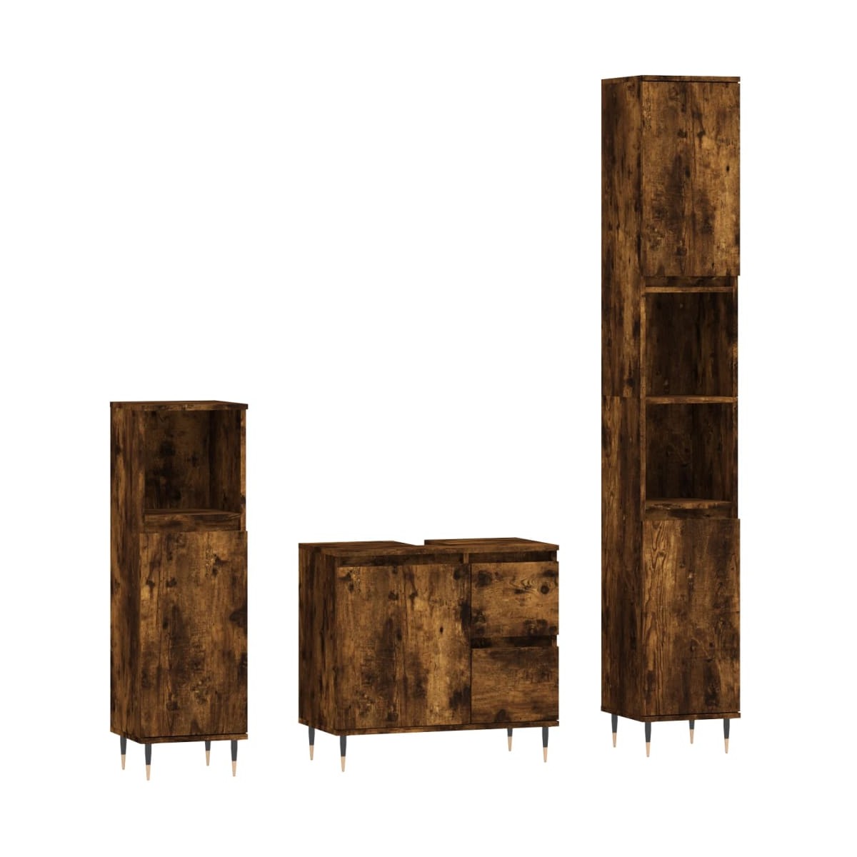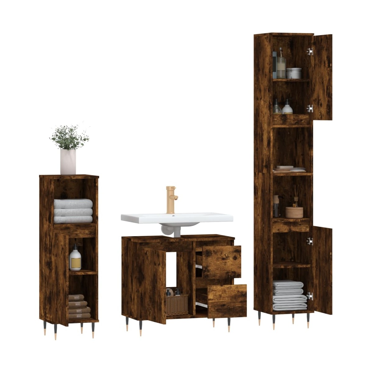 Este set de muebles de baño a la moda está destinado a ser un aporte excelente para el baño, ¡lo que da un aspecto ordenado y llamativo! Material duradero: La madera de ingeniería tiene una calidad excepcional, con una superficie lisa y también cuenta con fuerza, estabilidad y resistencia a la humedad. Patas de hierro: Las patas de hierro añaden un estilo moderno y tranquilo a la casa, además de garantizar su estabilidad.Amplio espacio de almacenaje: El mueble de baño ofrece diversas opciones de almacenaje y un amplio espacio para que puedas guardar objetos en el baño. Diseño práctico: La parte superior del mueble del lavabo es ideal para colocar el lavamanos. Advertencia:Para evitar que vuelque, este producto debe usarse con el dispositivo de fijación a la pared incluido. Información útil:El lavabo no está incluido en la entrega.Los tornillos y los tacos para el interior de la pared no están incluidos. Recomendamos encontrar y utilizar tornillos y tacos adecuados específicamente para las paredes. Si no estás seguro, puedes consultar con un profesional. Lee y sigue cada paso de las instrucciones.