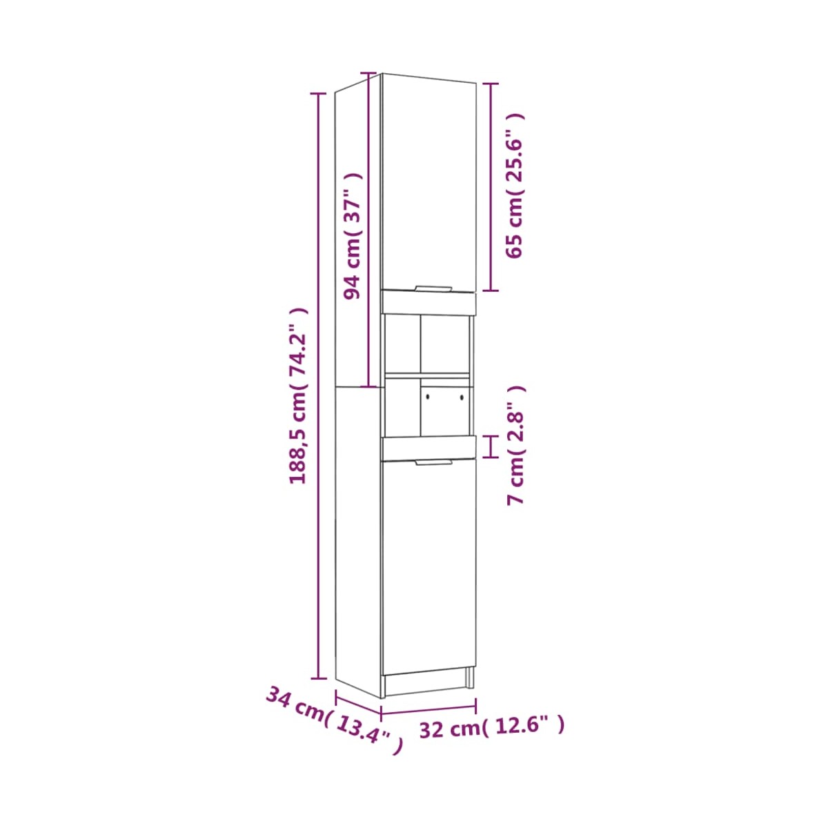 - Dimensiones del armario de suelo (L): 32 x 34 x 188,5 cm (largo x ancho x alto)