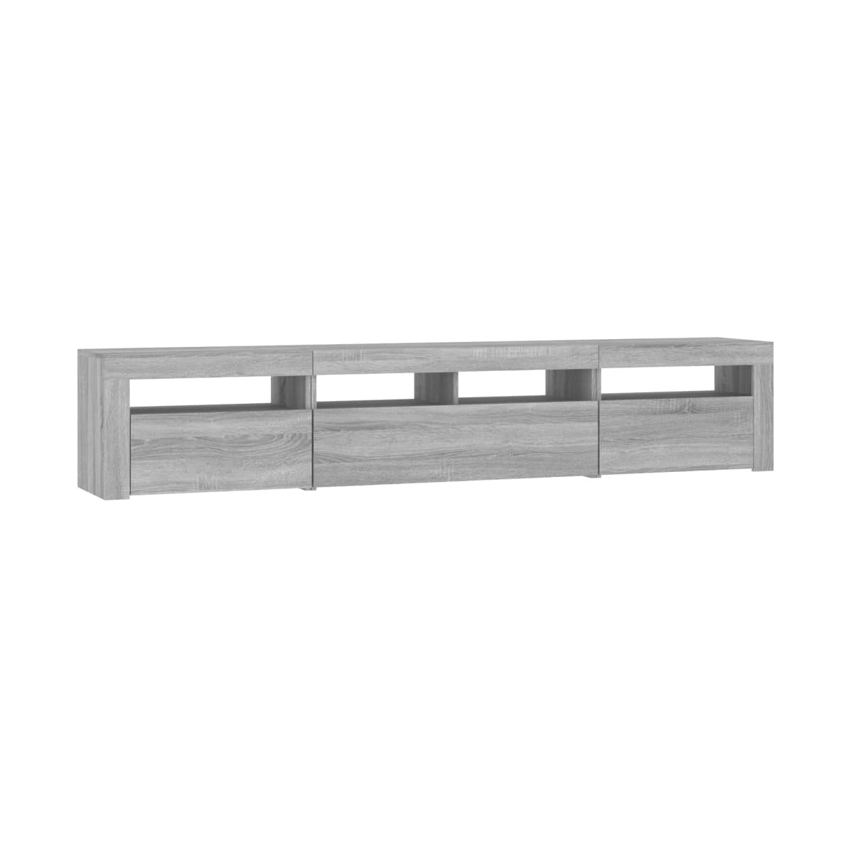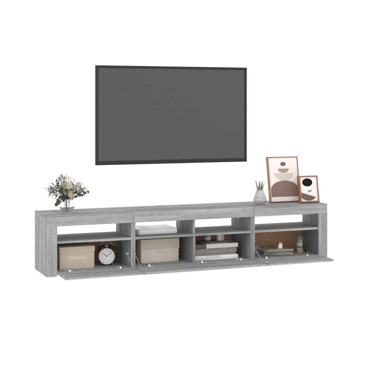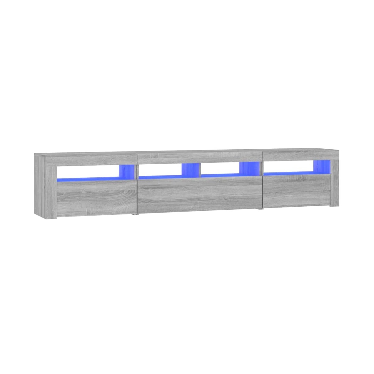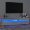Con un diseño moderno y práctico, este mueble para la TV con luces LED definitivamente se convierte en el centro de atención de tu habitación. Material práctico: La madera contrachapada tiene una calidad excepcional, con una superficie lisa y también cuenta con fuerza, estabilidad y resistencia a la humedad. Luces LED de colores: El soporte de TV cuenta con luces LED RGB, que tiene diferentes menús para cambiar el color de las luces y dejar que el color se ajuste automáticamente de forma diferente. Las luces LED subrayan el aspecto moderno y contribuyen a la sensación de moda.Amplio espacio de almacenamiento: El mueble de TV ofrece mucho espacio de almacenamiento para mantener tus revistas, libros, mandos a distancia y otros objetos pequeños bien organizados y al alcance de la mano.Función de exhibición: La robusta parte superior del armario multimedia es ideal para exponer objetos decorativos, marcos de fotos o plantas en maceta. Nota:El producto tiene un conector USB, pero no se incluye la fuente de alimentación USB de 5 V certificada.Cada producto viene con un manual de montaje en la caja para facilitar el montaje.