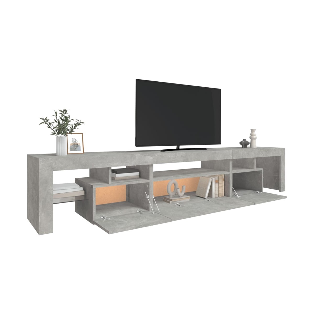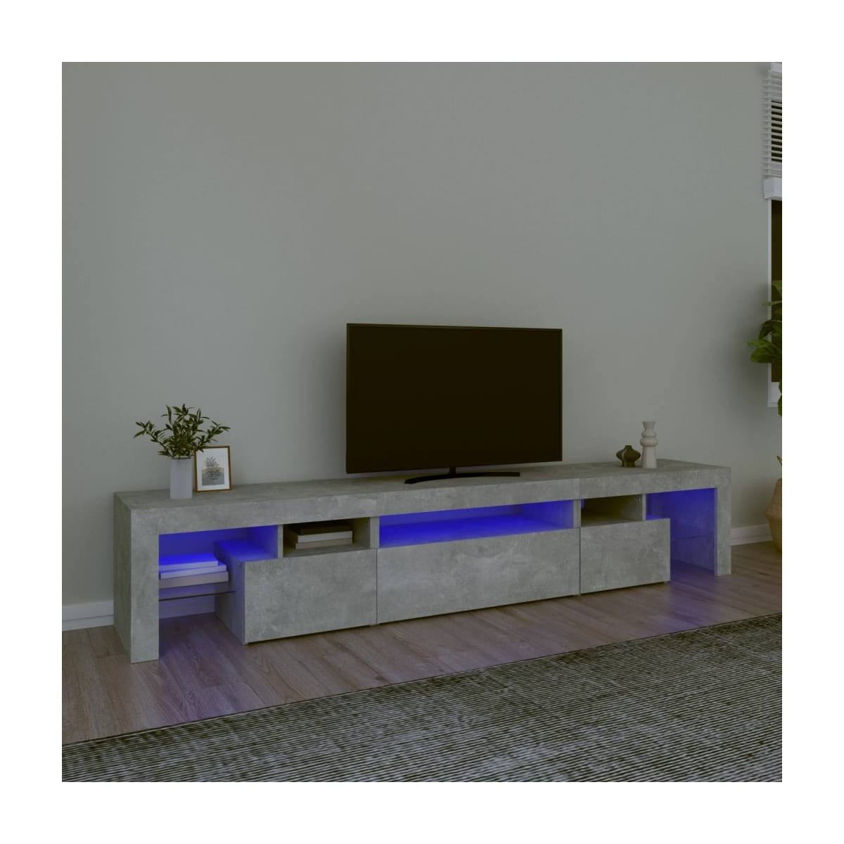 Con un diseño moderno y práctico, este mueble para la TV con luces LED definitivamente se convierte en el centro de atención de tu habitación. Material práctico: La madera contrachapada tiene una calidad excepcional, con una superficie lisa y también cuenta con fuerza, estabilidad y resistencia a la humedad. Luces LED de colores: El soporte de TV cuenta con luces LED RGB, que tiene diferentes menús para cambiar el color de las luces y dejar que el color se ajuste automáticamente de forma diferente. Las luces LED subrayan el aspecto moderno y contribuyen a la sensación de moda.Amplio espacio de almacenamiento: El mueble de TV ofrece mucho espacio de almacenamiento para mantener tus revistas, libros, mandos a distancia y otros objetos pequeños bien organizados y al alcance de la mano.Función de exhibición: La robusta parte superior del armario multimedia es ideal para exponer objetos decorativos, marcos de fotos o plantas en maceta. Nota:El producto tiene un conector USB, pero no se incluye la fuente de alimentación USB de 5 V certificada.Cada producto viene con un manual de montaje en la caja para facilitar el montaje.