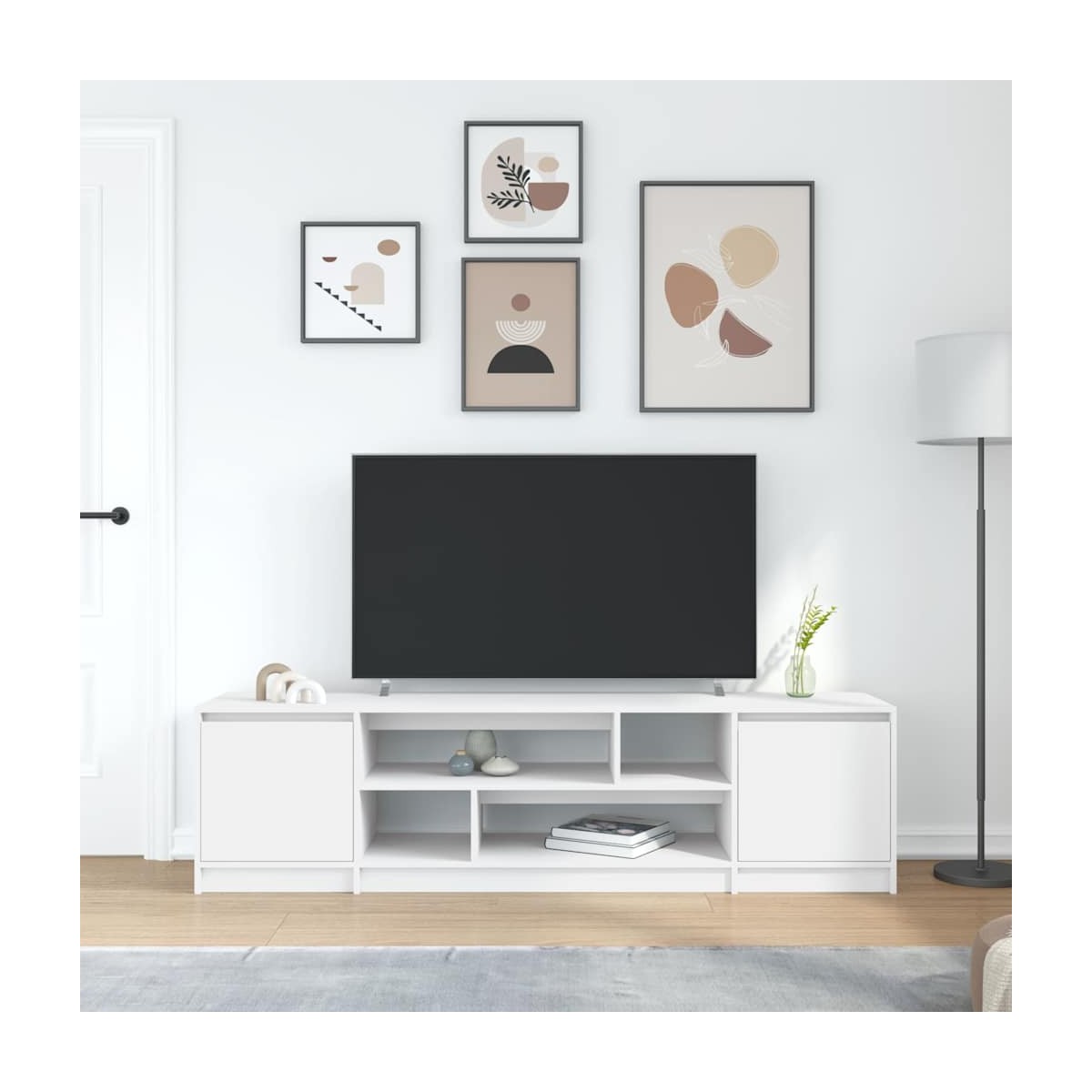 Este mueble de TV con amplio espacio de almacenamiento es un complemento práctico y llamativo para tu salón o dormitorio. Material estable y duradero: La madera de ingeniería es un material duradero y estable con una superficie lisa que es resistente a la humedad, la deformación y la rotura, lo que la convierte en una opción fiable para una variedad de proyectos.Amplio espacio de almacenamiento: Este mueble de TV proporciona un amplio espacio de almacenamiento para mantener tus revistas, libros, DVD y dispositivos multimedia bien organizados y al alcance de la mano.Superficie estable y resistente: La robusta superficie es ideal para colocar el televisor y el equipo de música o algunos objetos decorativos como jarrones o macetas.Puertas prácticas: Las dos puertas ayudan a mantener un espacio limpio y organizado ocultando pequeños objetos esenciales y desorden detrás de ellos.Fácil de mantener: El soporte del televisor es fácil de limpiar con un paño húmedo y requiere menos mantenimiento. Advertencia:Para evitar que vuelque, este producto debe usarse con el dispositivo de fijación a la pared suministrado.