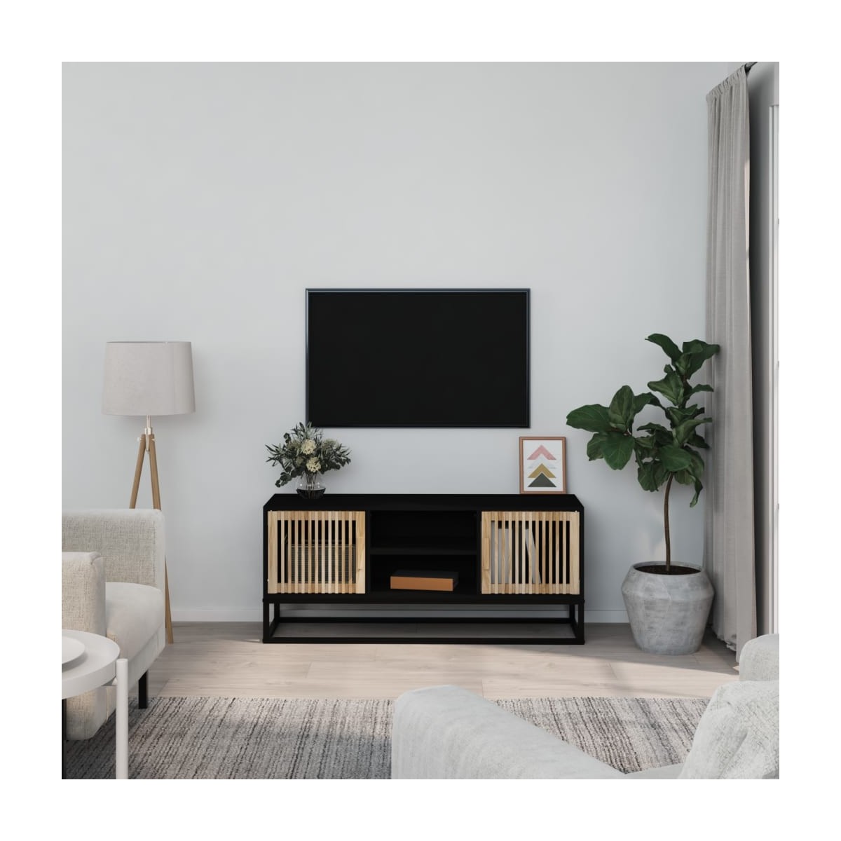 Con un diseño elegante y práctico, este mueble de TV se convertirá en el centro de atención de la estancia. Material duradero: La madera contrachapada tiene una calidad excepcional, con una superficie lisa y también cuenta con fuerza, estabilidad y resistencia a la humedad.Amplio espacio de almacenamiento: Equipado con 2 compartimentos abiertos y 2 compartimentos detrás de las puertas, el soporte para TV ofrece un amplio espacio de almacenamiento para mantener organizadas todas tus revistas, DVD y cualquier otro artículo.Superficie resistente: La superficie del mueble para TV proporciona una zona segura para poner objetos decorativos, marcos de fotos o plantas.Patas de metal: Las patas metálicas añaden un estilo tranquilo a la casa a la vez que garantizan la estabilidad. Información útil:Para facilitar al máximo el montaje, cada producto se entrega con un manual.