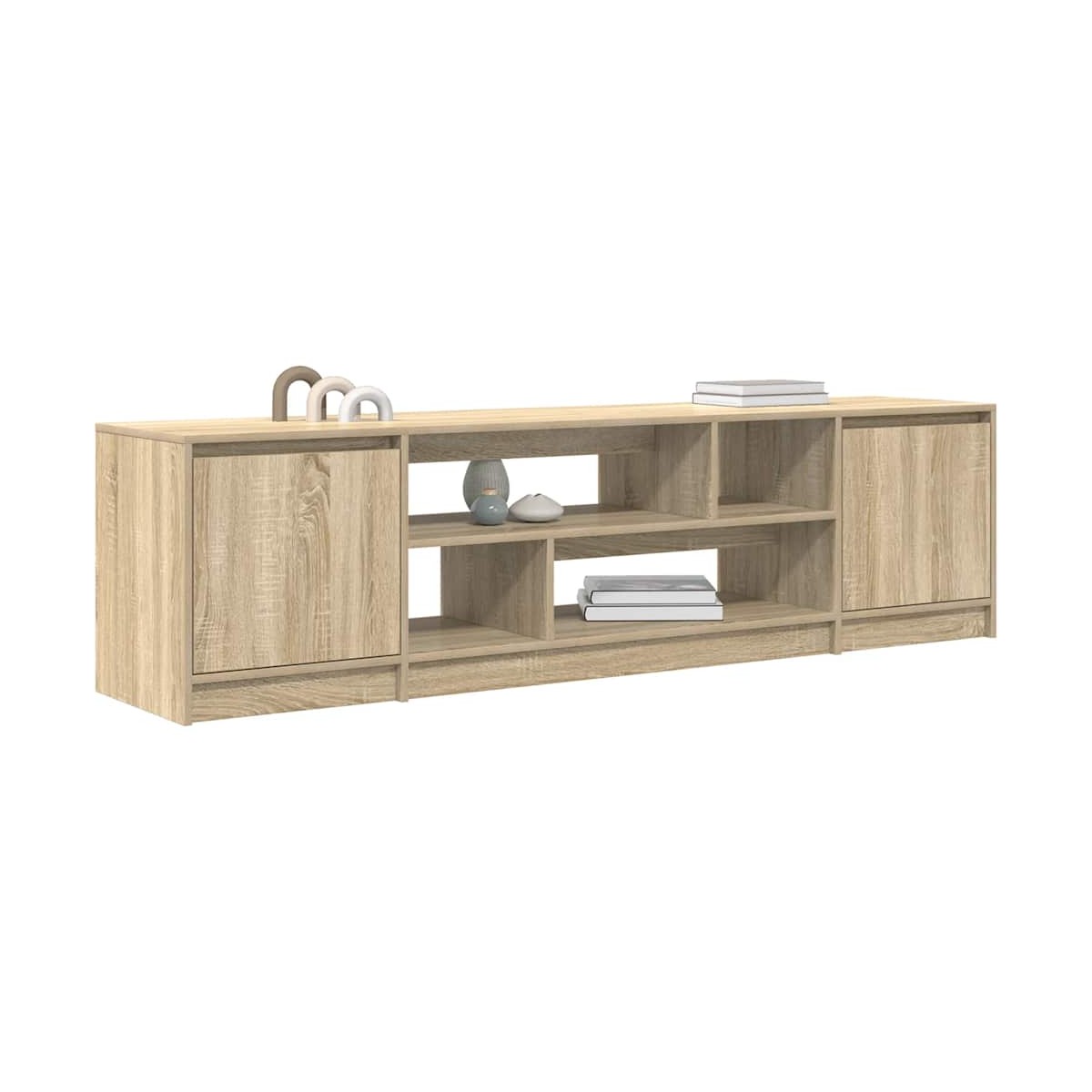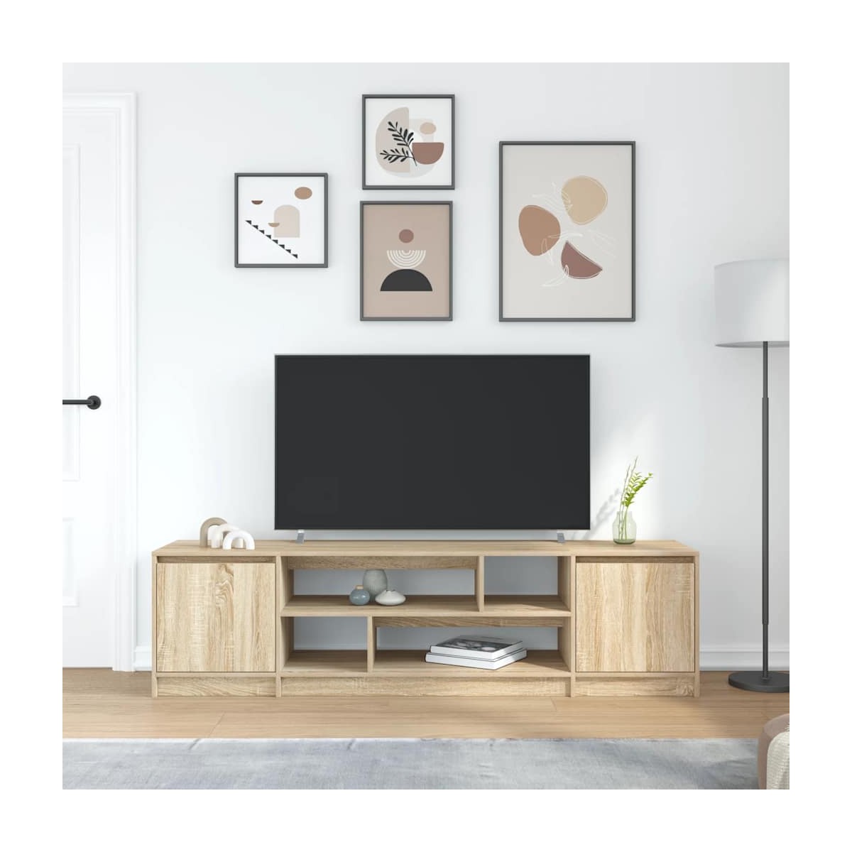 Este mueble de TV con amplio espacio de almacenamiento es un complemento práctico y llamativo para tu salón o dormitorio. Material estable y duradero: La madera de ingeniería es un material duradero y estable con una superficie lisa que es resistente a la humedad, la deformación y la rotura, lo que la convierte en una opción fiable para una variedad de proyectos.Amplio espacio de almacenamiento: Este mueble de TV proporciona un amplio espacio de almacenamiento para mantener tus revistas, libros, DVD y dispositivos multimedia bien organizados y al alcance de la mano.Superficie estable y resistente: La robusta superficie es ideal para colocar el televisor y el equipo de música o algunos objetos decorativos como jarrones o macetas.Puertas prácticas: Las dos puertas ayudan a mantener un espacio limpio y organizado ocultando pequeños objetos esenciales y desorden detrás de ellos.Fácil de mantener: El soporte del televisor es fácil de limpiar con un paño húmedo y requiere menos mantenimiento. Advertencia:Para evitar que vuelque, este producto debe usarse con el dispositivo de fijación a la pared suministrado.