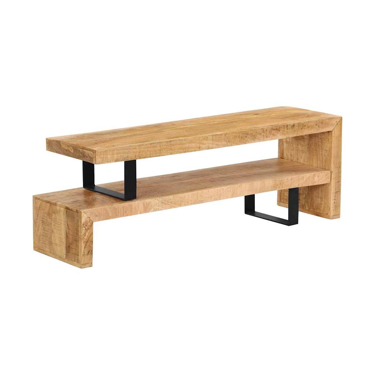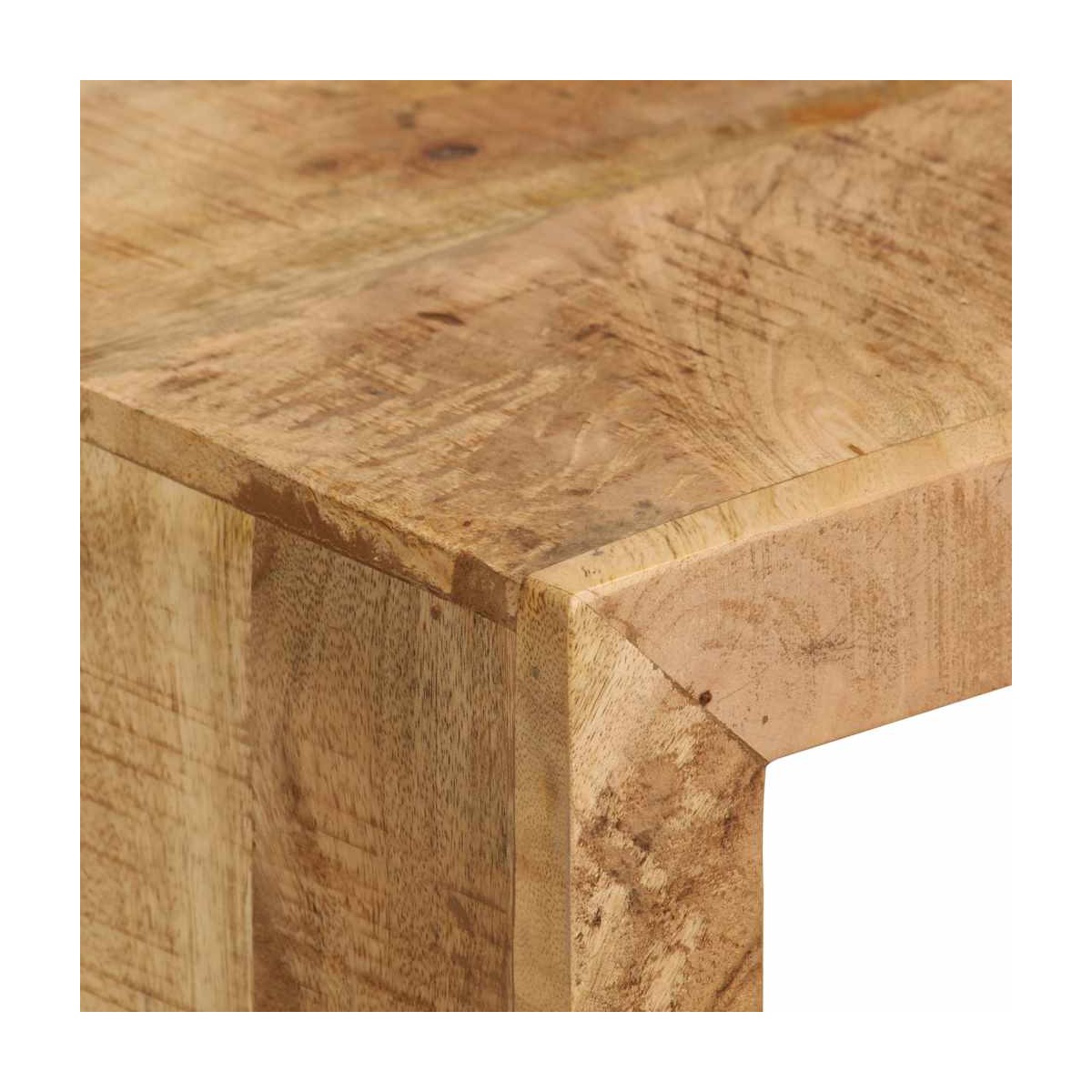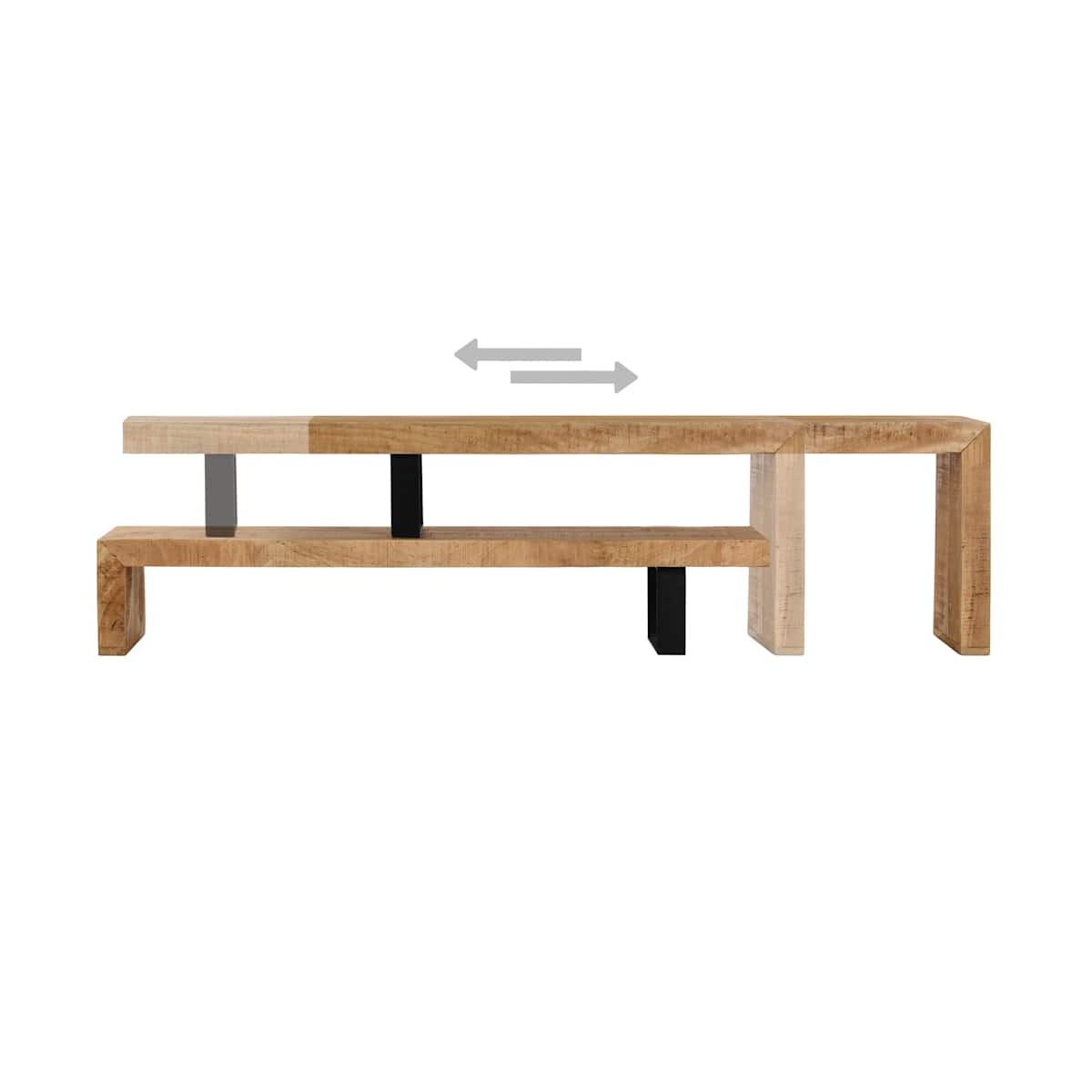 Este soporte para TV de madera es moderno pero práctico. El elegante diseño hará de esta unidad de TV una pieza central en cualquier habitación. Esta mesa para TV está hecha de madera maciza de mango, por lo que es bastante robusta y duradera. Cada paso del proceso de fabricación se lleva a cabo con el mayor cuidado, ya sea el pulido, la pintura, el barnizado y el lacado. La artesanía y las atractivas vetas de la madera dotan a cada pieza de mobiliario de un carácter único que las diferencia del resto. El mueble para la televisión es desmontable, por lo que podrás ajustar la longitud en función de tus necesidades. El montaje es sencillo. Nota importante: Las vetas y los colores de la madera pueden variar de una pieza a otra, por lo que cada uno de nuestros muebles para TV es único. La entrega es aleatoria, garantizando la exclusividad e individualidad del producto.