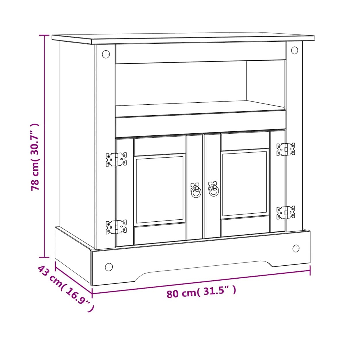 - Dimensiones: 80 x 43 x 78 cm (ancho x profundo x alto)