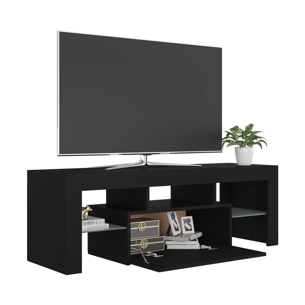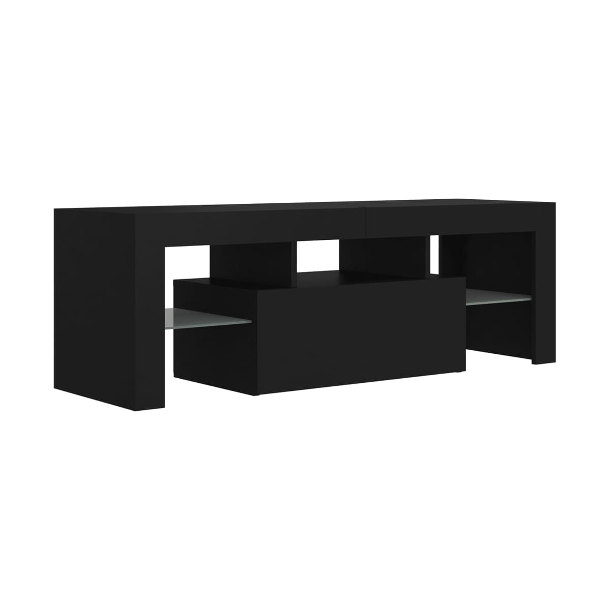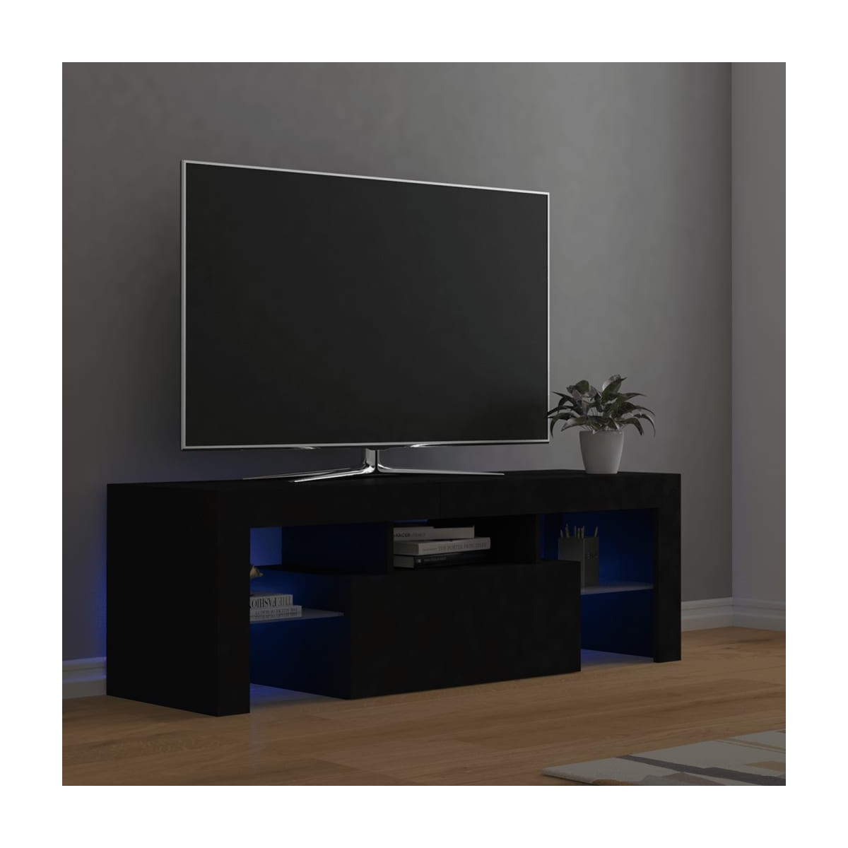 Con un diseño moderno y práctico, este mueble para la TV con luces LED definitivamente se conviertirá en el centro de atención de tu habitación. La construcción resistente de este mueble de televisor lo hace muy duradero. Tiene un amplio espacio para que puedas guardar tu reproductor de DVD, tu videoconsola, tu dispositivo de streaming y tus soportes multimedia de forma ordenada. Este soporte para TV cuenta con luces LED RGB, que tienen diferentes menús para cambiar el color de las luces y permitir que el color se ajuste automáticamente de manera diferente. Las luces LED subrayan el aspecto moderno y contribuyen a la sensación de moda. Además, este set es fácil de limpiar con un paño húmedo. Nota:El producto tiene un conector USB, pero no se incluye la fuente de alimentación USB de 5 V certificada.