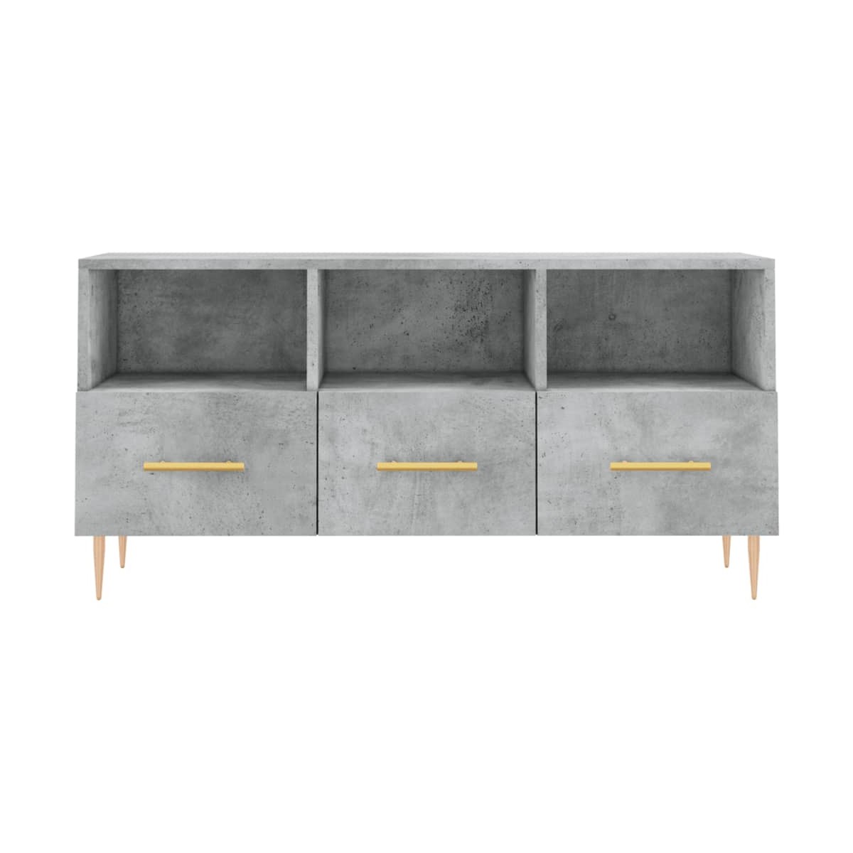 Este robusto mueble para TV está diseñado para ser el centro de atención de tu estancia, gracias a su diseño moderno a la par que práctico. Material robusto: La madera contrachapada tiene una calidad excepcional, con una superficie lisa y también cuenta con fuerza, estabilidad y resistencia a la humedad. Hecha de madera contrachapada, el mueble de TV es fácil de limpiar.Amplio espacio de almacenaje: El mueble de TV tiene 3 compartimentos y 3 cajones que lo convierten en un lugar ideal para guardar todas tus revistas, DVD y otros objetos.Función expositora: La resistente superficie del mueble es ideal para exhibir objetos decorativos como marcos de fotos y plantas.Patas de hierro: Las patas de hierro dan un estilo tranquilo a la casa, además de garantizar la estabilidad de la mesa. Advertencia:Para evitar el vuelco, este producto debe usarse con el dispositivo provisto para fijarlo a la pared.