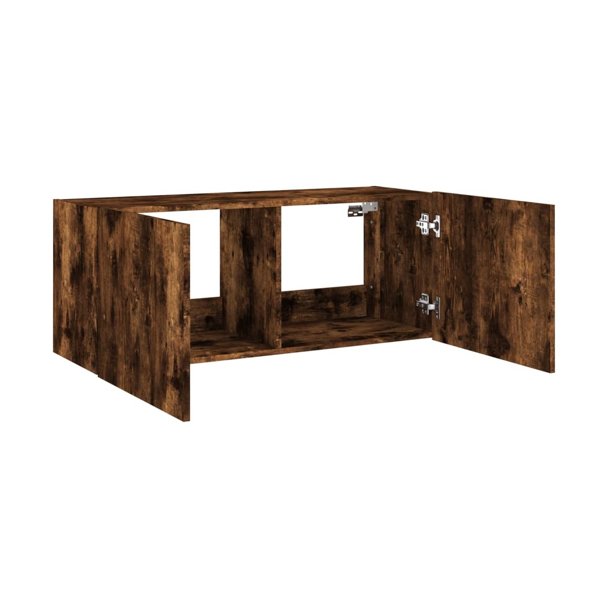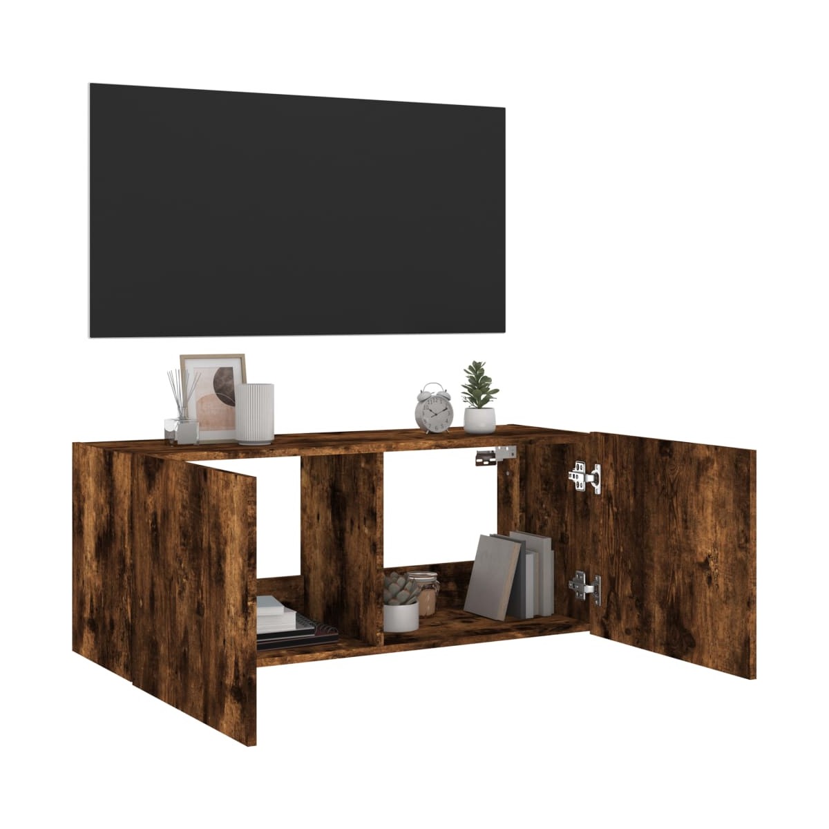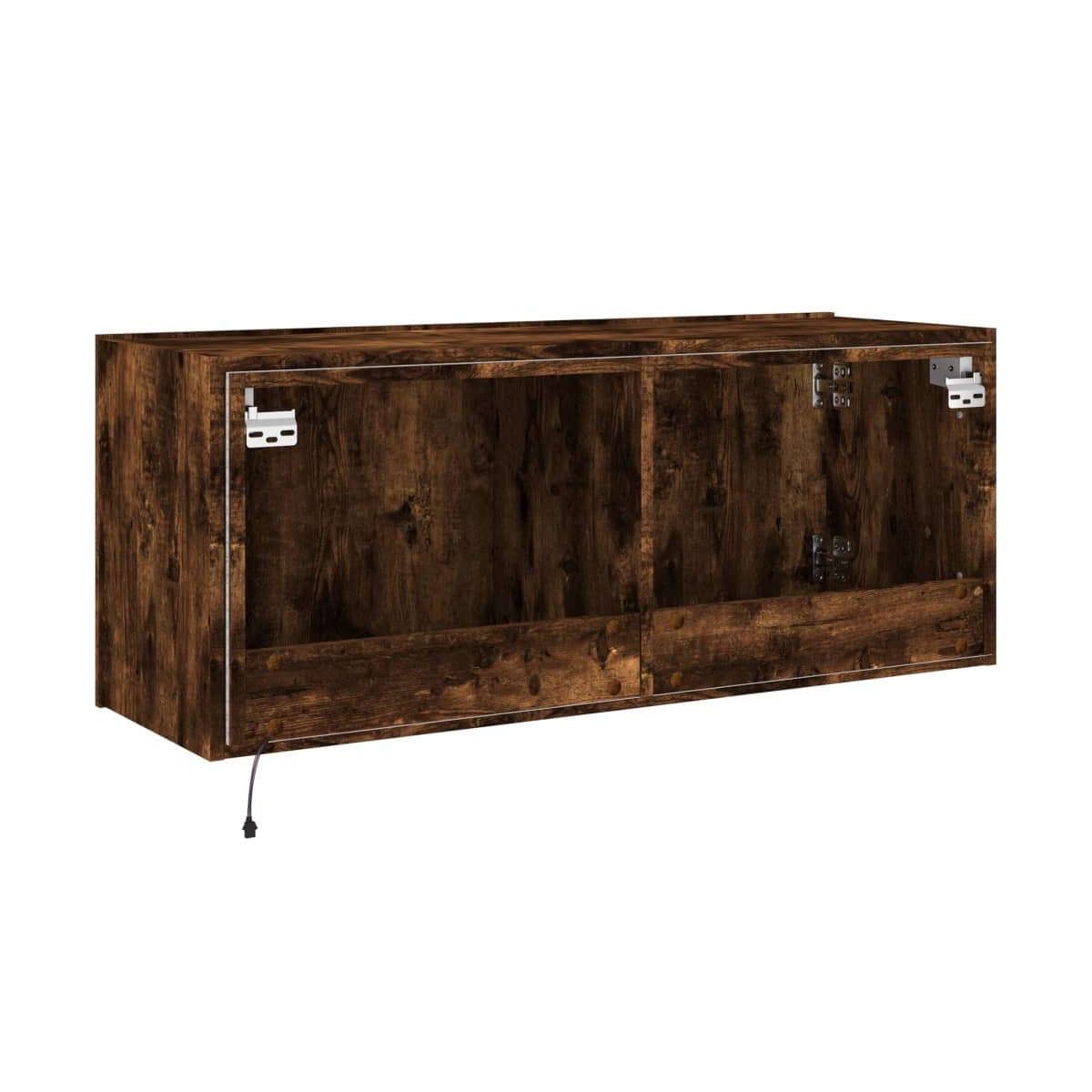 Este mueble de TV de pared es la solución perfecta para la casa, con el fin de maximizar el espacio y mantener el suelo despejado. Material duradero: La madera de ingeniería tiene una calidad excepcional, con una superficie lisa y también cuenta con fuerza, estabilidad y resistencia a la humedad.Luces LED RGB: El mueble multimedia de pared está equipado con increíbles luces LED RGB. Con diversos menús personalizables, puedes cambiar el color de las luces sin esfuerzo e incluso hacer que se ajusten automáticamente. Estas luces LED no sólo realzan el aspecto moderno del mueble de TV flotante, sino que también le dan un toque a la moda.Amplio espacio de almacenaje: El mueble para TV de pared tiene 2 compartimentos detrás de las puertas que ofrecen un amplio espacio para mantener organizadas y al alcance objetos pequeños, como libros, DVD y revistas.Diseño de pared: El armario con LED se puede montar en la pared para ganar un plus de espacio de almacenaje. De este modo, podrás aprovechar al máximo el espacio del suelo y mantener la zona limpia. Información útil:Los tornillos y los tacos para el interior de la pared no están incluidos. Recomendamos encontrar y utilizar tornillos y tacos adecuados específicamente para las paredes. Si no estás seguro, puedes consultar con un profesional. Lee y sigue cada paso de las instrucciones.El producto tiene un conector USB que necesita una fuente de alimentación USB certificada de 5 V (no incluida).