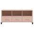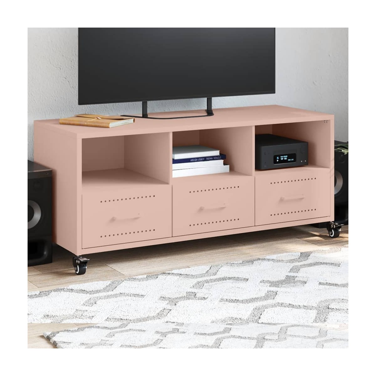 Este mueble para TV es sencillo y práctico, y se adapta perfectamente a tu salón. Material duradero: El acero es un material muy duro y fuerte. Ofrece robustez y estabilidad. Las placas de acero laminadas en frío tienen una buena calidad superficial y una alta precisión dimensional.Función expositora: La resistente superficie del mueble es ideal para exhibir objetos decorativos como marcos y plantas.Amplio almacenaje: El mueble de TV ofrece 3 cajones y 3 estantes que lo convierten en un lugar ideal para guardar todas las revistas, DVD y otros objetos.Fácil mantenimiento: La mesa de centro con superficie resistente a las manchas es fácil de limpiar y puedes mantener la mesa con el mejor aspecto sin esfuerzo.Fácil de mover: Este armario tiene 4 ruedas, lo que hace que se mueva con flexibilidad y se estacione de manera estable en cualquier momento.