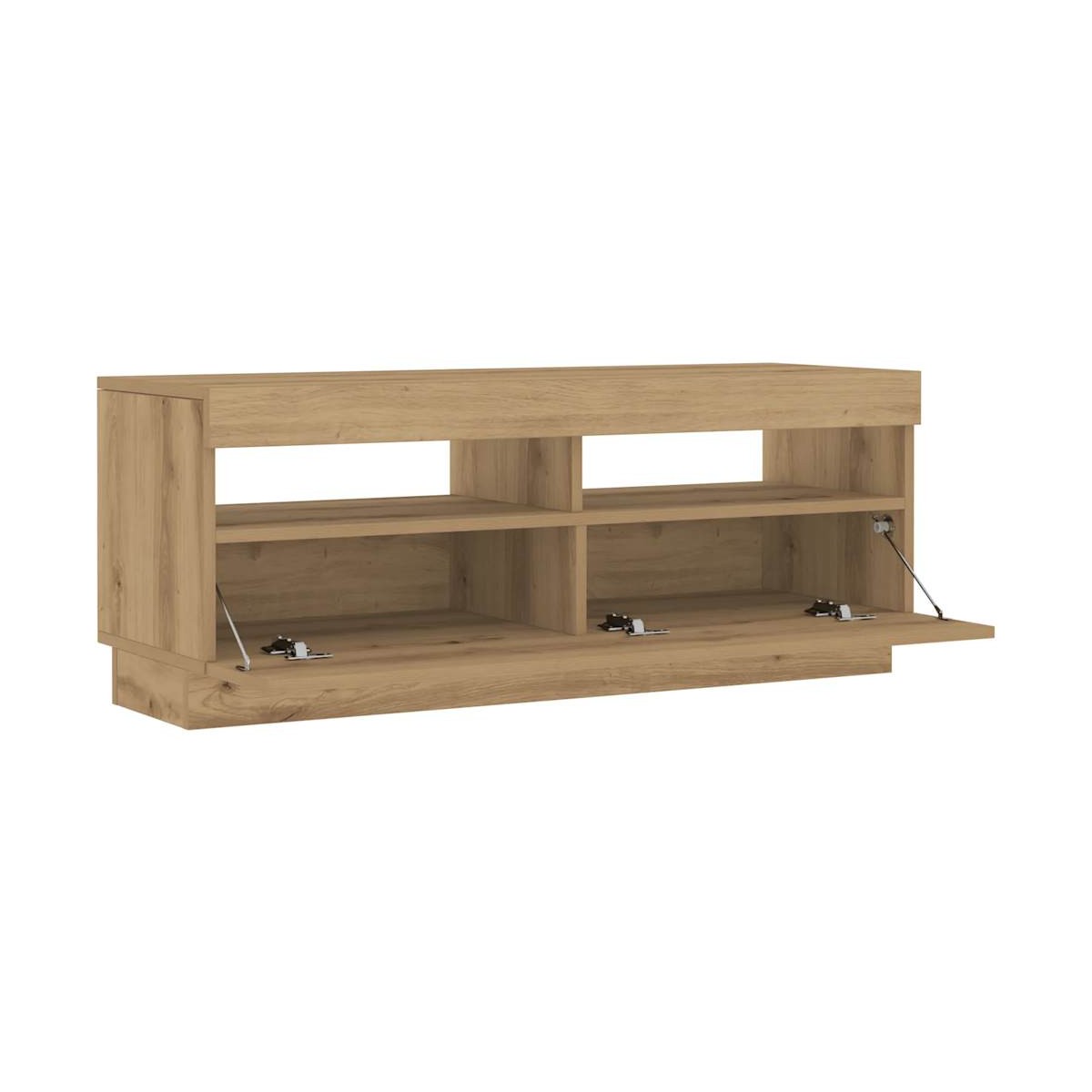 Con un diseño moderno pero práctico, este robusto mueble para la televisión se convertirá en el centro de atención de la estancia.Material duradero: La madera de ingeniería tiene una calidad excepcional, con una superficie lisa y también cuenta con fuerza, estabilidad y resistencia a la humedad.Luces LED RGB: Este soporte para TV cuenta con luces LED RGB, que tienen diferentes menús para cambiar el color de las luces y permitir que el color se ajuste automáticamente de manera diferente. Las luces LED subrayan el aspecto moderno y refuerzan el estilo a la última.Amplio espacio de almacenaje: El amplio espacio de almacenaje permite tener las cosas organizadas.Función de expositor: La capa superior del mueble de TV flotante es perfecta para colocar marcos de fotos, macetas y otros objetos decorativos.Información útil:El producto tiene un conector USB que necesita una fuente de alimentación USB certificada de 5 V (no incluida).