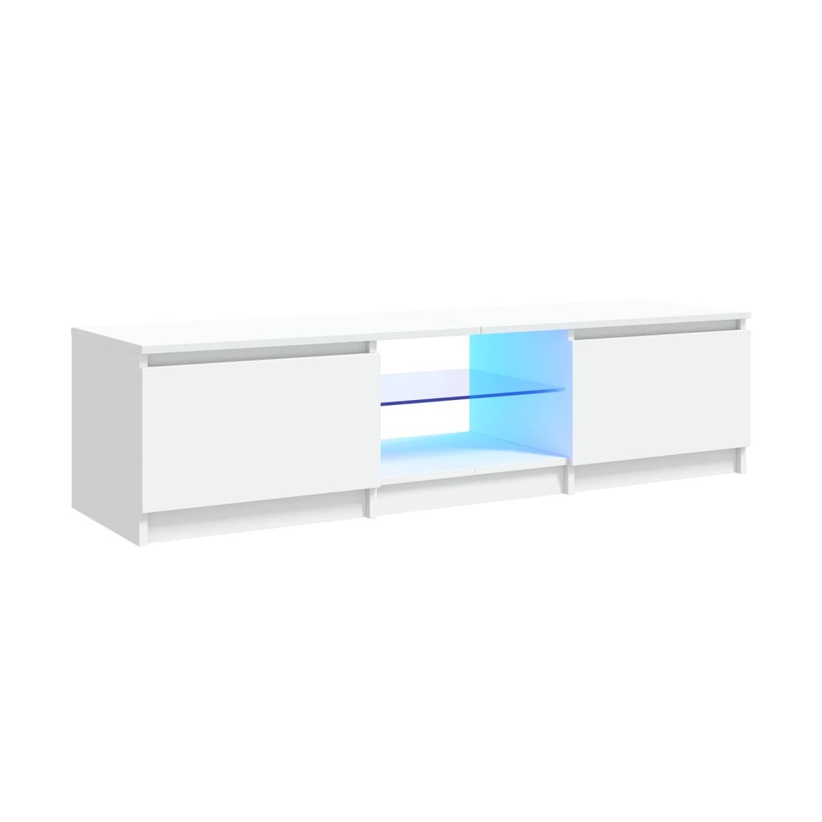Con un diseño moderno y práctico, este mueble para la TV con luces LED definitivamente se convierte en el centro de atención de tu habitación. La construcción resistente de este mueble de televisor lo hace muy duradero. Tiene un amplio espacio para que puedas guardar tu reproductor de DVD, tu videoconsola, tu dispositivo de streaming y tus soportes multimedia de forma ordenada. Este soporte para TV cuenta con luces LED RGB, que tienen diferentes menús para cambiar el color de las luces y permitir que el color se ajuste automáticamente de manera diferente. Las luces LED subrayan el aspecto moderno y contribuyen a la sensación de moda. Además, este set es fácil de limpiar con un paño húmedo. Nota:El producto tiene un conector USB, pero no se incluye la fuente de alimentación USB de 5 V certificada.