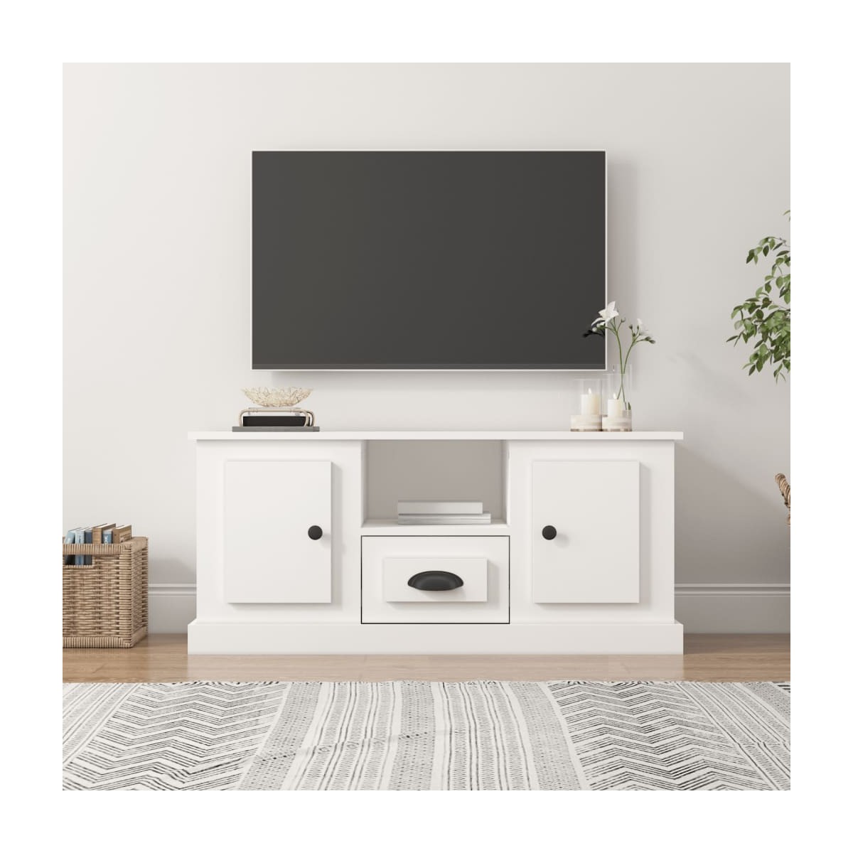 Con un diseño elegante y práctico, este mueble de TV se convertirá en el centro de atención de la estancia. Material duradero: La madera contrachapada tiene una calidad excepcional, con una superficie lisa y también cuenta con fuerza, estabilidad y resistencia a la humedad.Amplio espacio de almacenamiento: El soporte para TV ofrece un amplio espacio de almacenamiento para mantener todas las revistas, DVD y cualquier otro artículo bien organizados.Superficie resistente: La superficie del mueble para TV proporciona una zona segura para poner objetos decorativos, marcos de fotos o plantas. Información útil:Para facilitar al máximo el montaje, cada producto se entrega con un manual.