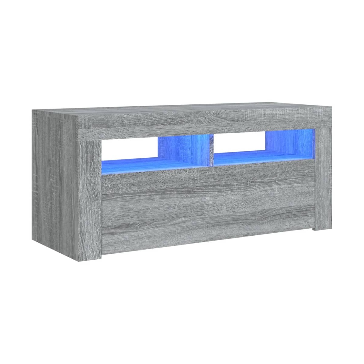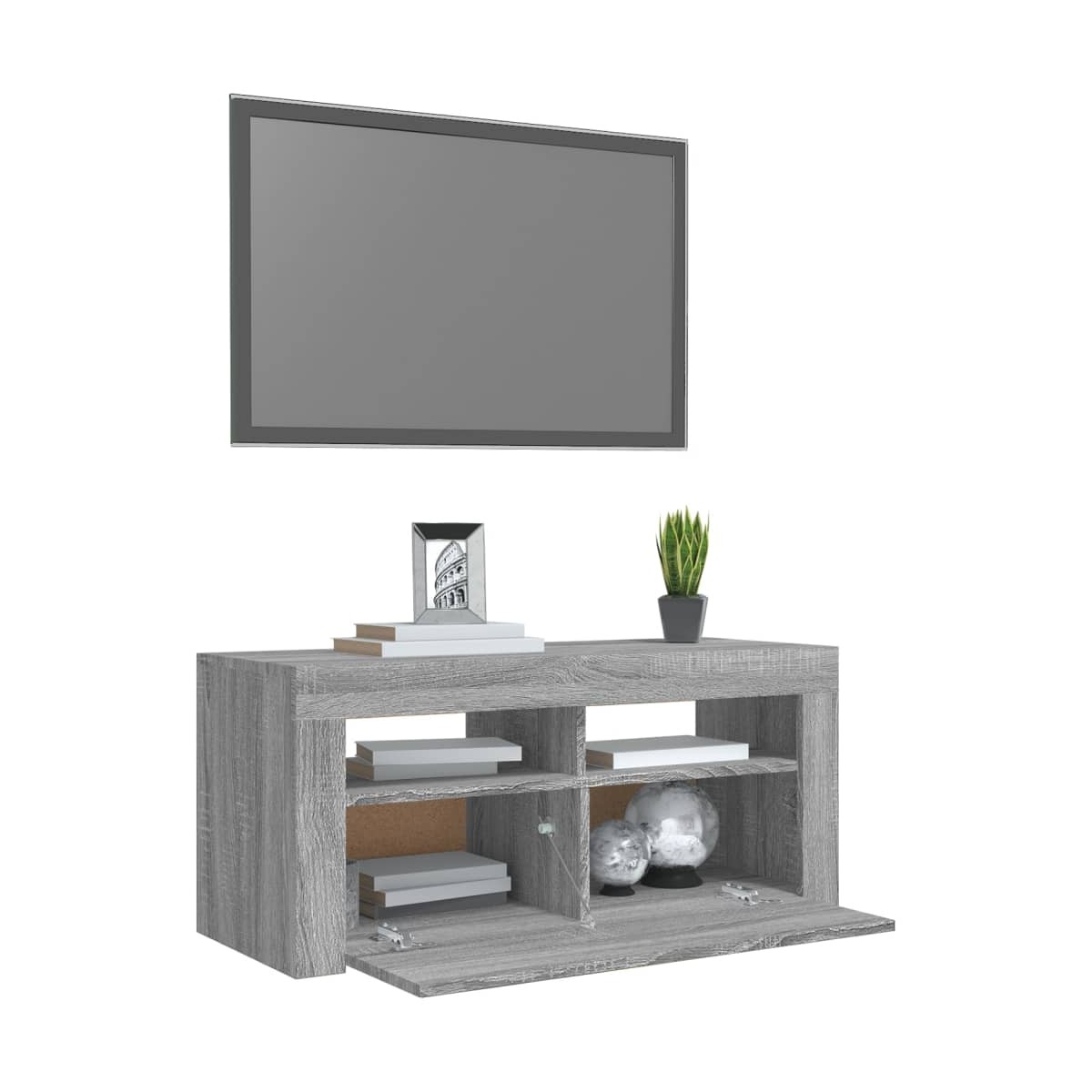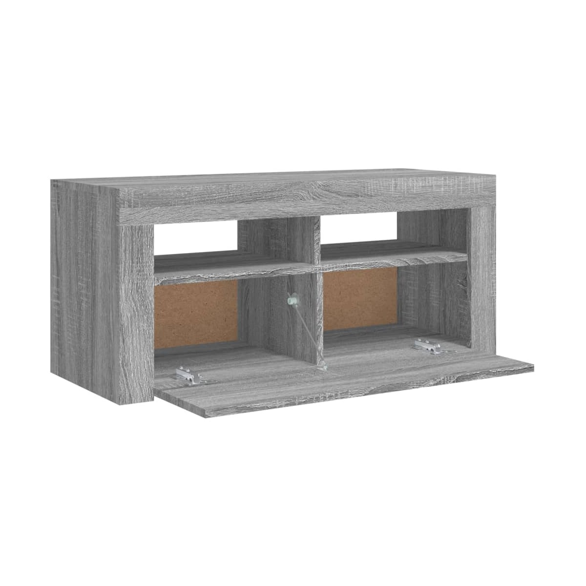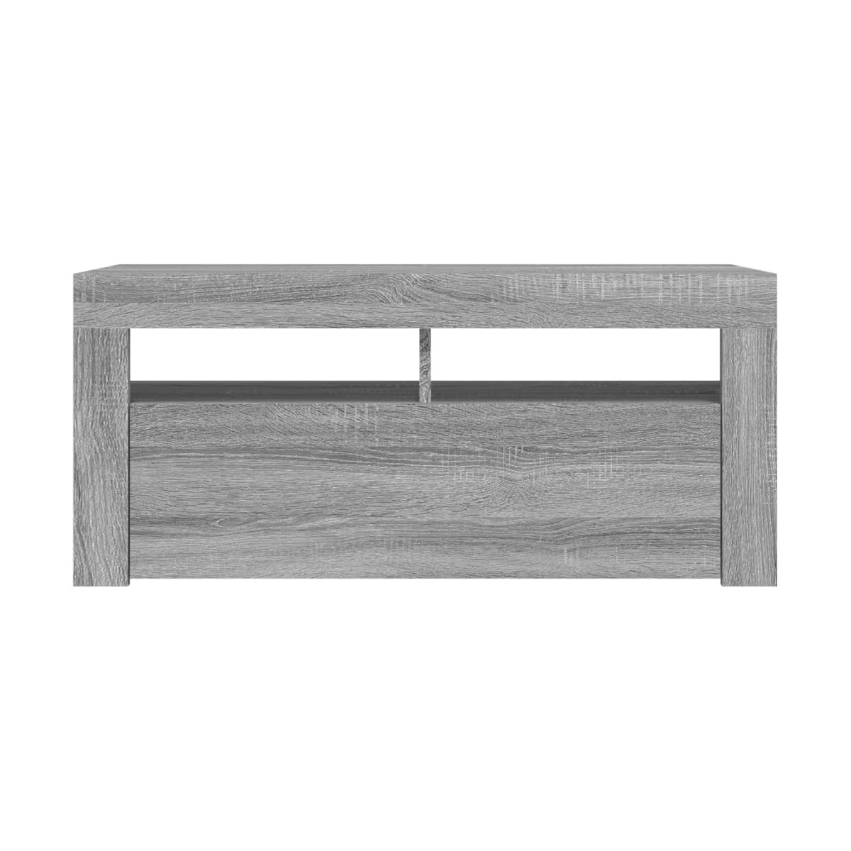 Con un diseño elegante y práctico, este mueble de TV con luces LED se convertirá en el centro de atención de la estancia. Material práctico: La madera contrachapada tiene una calidad excepcional, con una superficie lisa y también cuenta con fuerza, estabilidad y resistencia a la humedad. Hecha de madera contrachapada, el mueble de TV es fácil de limpiar.Luces LED de colores: Este armario cuenta con luces LED RGB, que tienen diferentes menús para cambiar el color de las luces y permitir que el color se ajuste automáticamente de manera diferente. Las luces LED subrayan el aspecto moderno y refuerzan el estilo a la última.Amplio espacio de almacenamiento: El espacio de almacenamiento hace que sea fácil mantener las cosas organizadas en el armario multimedia.Look elegante: Las líneas limpias y el diseño elegante hacen que la unidad multimedia combine perfectamente en tu decoración. Nota: Cada producto viene con un manual de montaje en la caja para facilitar el montaje.El producto tiene un conector USB, pero no se incluye la fuente de alimentación USB de 5 V certificada.