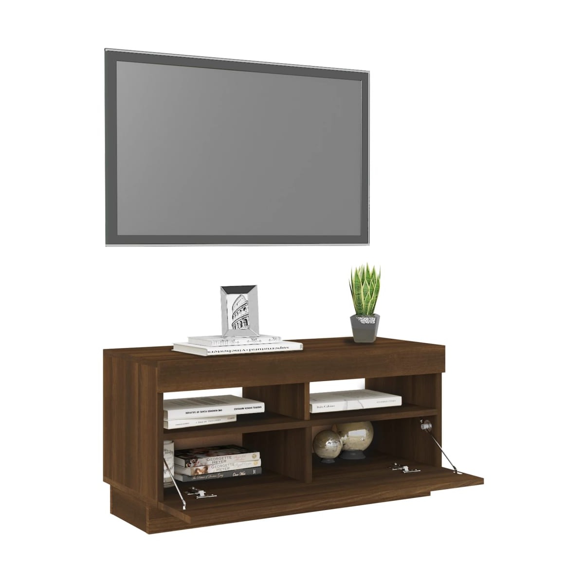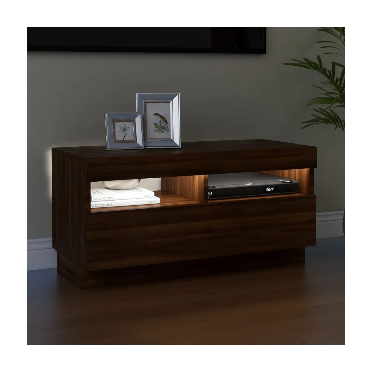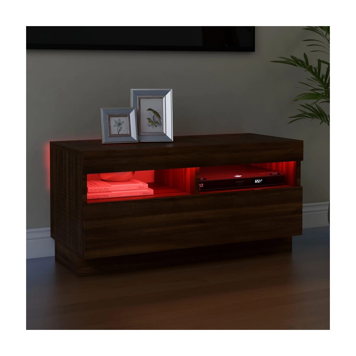 Con un diseño elegante y práctico, este mueble de TV con luces LED se convertirá en el centro de atención de la estancia. Material práctico: La madera contrachapada tiene una calidad excepcional, con una superficie lisa y también cuenta con fuerza, estabilidad y resistencia a la humedad. Hecho de madera contrachapada, este armario para TV con LED es fácil de limpiar.Amplio espacio de almacenaje: El espacio de almacenaje facilita tener las cosas organizadas.Luces LED RGB: Este soporte para TV cuenta con luces LED RGB, que tienen diferentes menús para cambiar el color de las luces y permitir que el color se ajuste automáticamente de manera diferente. Las luces LED subrayan el aspecto moderno y contribuyen a la sensación de moda.Diseño elegante: Las líneas limpias y el diseño elegante hacen que este armario de TV se integre perfectamente con tu decoración. Nota: Cada producto viene con un manual de montaje en la caja para facilitar el montaje.El producto tiene un conector USB, pero no se incluye la fuente de alimentación USB de 5 V certificada.