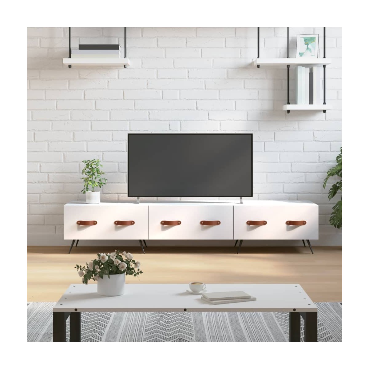 Este robusto mueble para TV está diseñado para ser el centro de atención de tu estancia, gracias a su diseño moderno a la par que práctico. Material robusto: La madera contrachapada tiene una calidad excepcional, con una superficie lisa y también cuenta con fuerza, estabilidad y resistencia a la humedad. Hecha de madera contrachapada, el mueble de TV es fácil de limpiar.Amplio espacio de almacenaje: El mueble de TV tiene 3 cajones que lo convierten en un lugar ideal para guardar todas tus revistas, DVD y otros objetos.Función expositora: La resistente superficie del mueble es ideal para exhibir objetos decorativos como marcos de fotos y plantas.Patas de hierro: Las patas de hierro dan un estilo tranquilo a la casa, además de garantizar la estabilidad de la mesa.