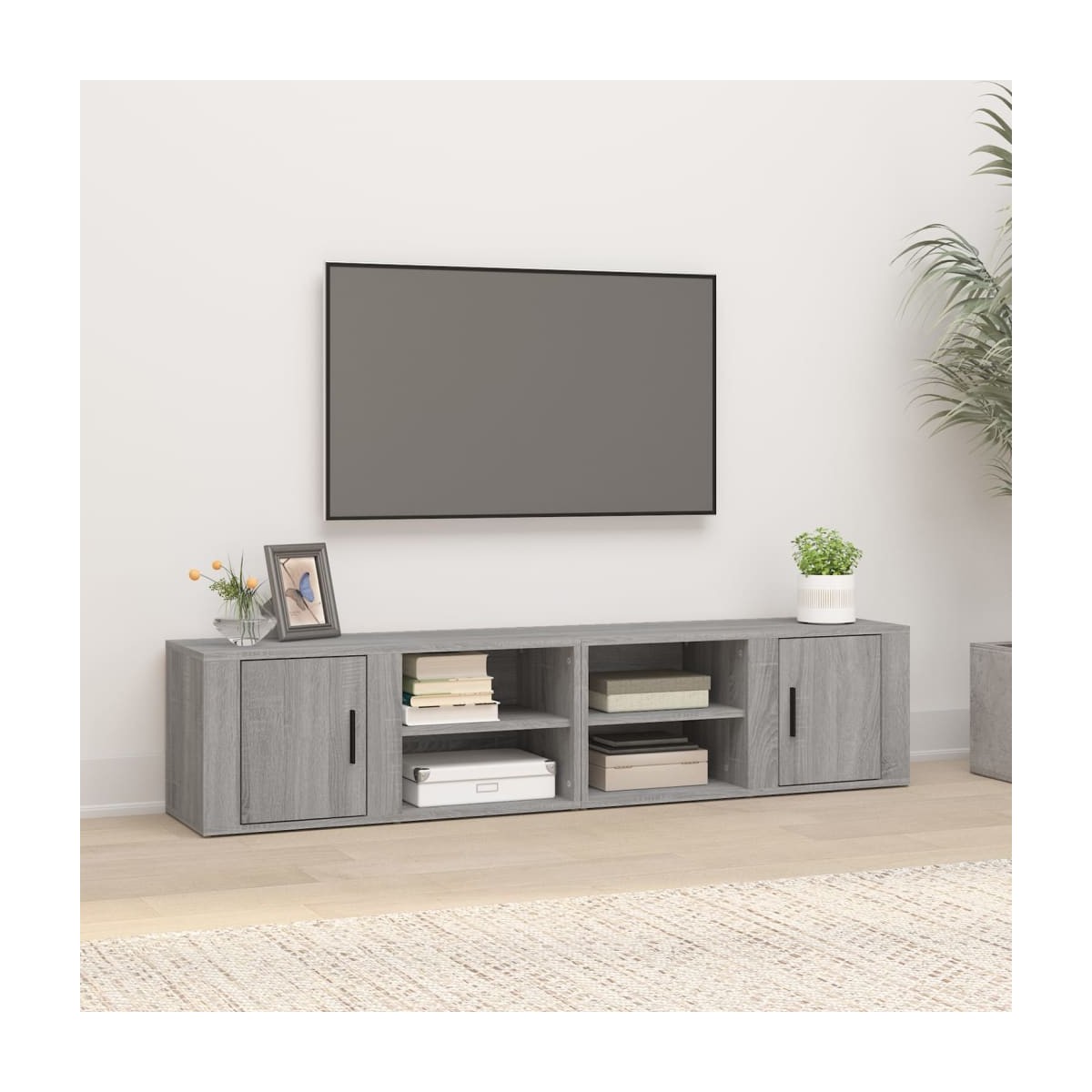 Estos robustos armarios para TV están diseñados para ser el centro de atención de tu habitación con un diseño moderno pero práctico. Material robusto: La madera contrachapada tiene una calidad excepcional, con una superficie lisa y también cuenta con fuerza, estabilidad y resistencia a la humedad. Hecha de madera contrachapada, el mueble de TV es fácil de limpiar.Amplio almacenaje: El mueble de TV tiene 3 compartimentos que lo convierten en un lugar ideal para guardar todas tus revistas, DVD y otros artículos.Puerta práctica: Mantén tus objetos esenciales sin polvo al ocultarlos detrás de las puertas de este armario.Función expositora: La resistente superficie del mueble es ideal para exhibir objetos decorativos como marcos y plantas.Dos opciones de montaje: La puerta del armario para equipos de música se puede instalar a la izquierda o a la derecha según lo que necesites. Nota: La lona impermeable no está incluidaCada producto viene con un manual de montaje en la caja para facilitar el montaje.