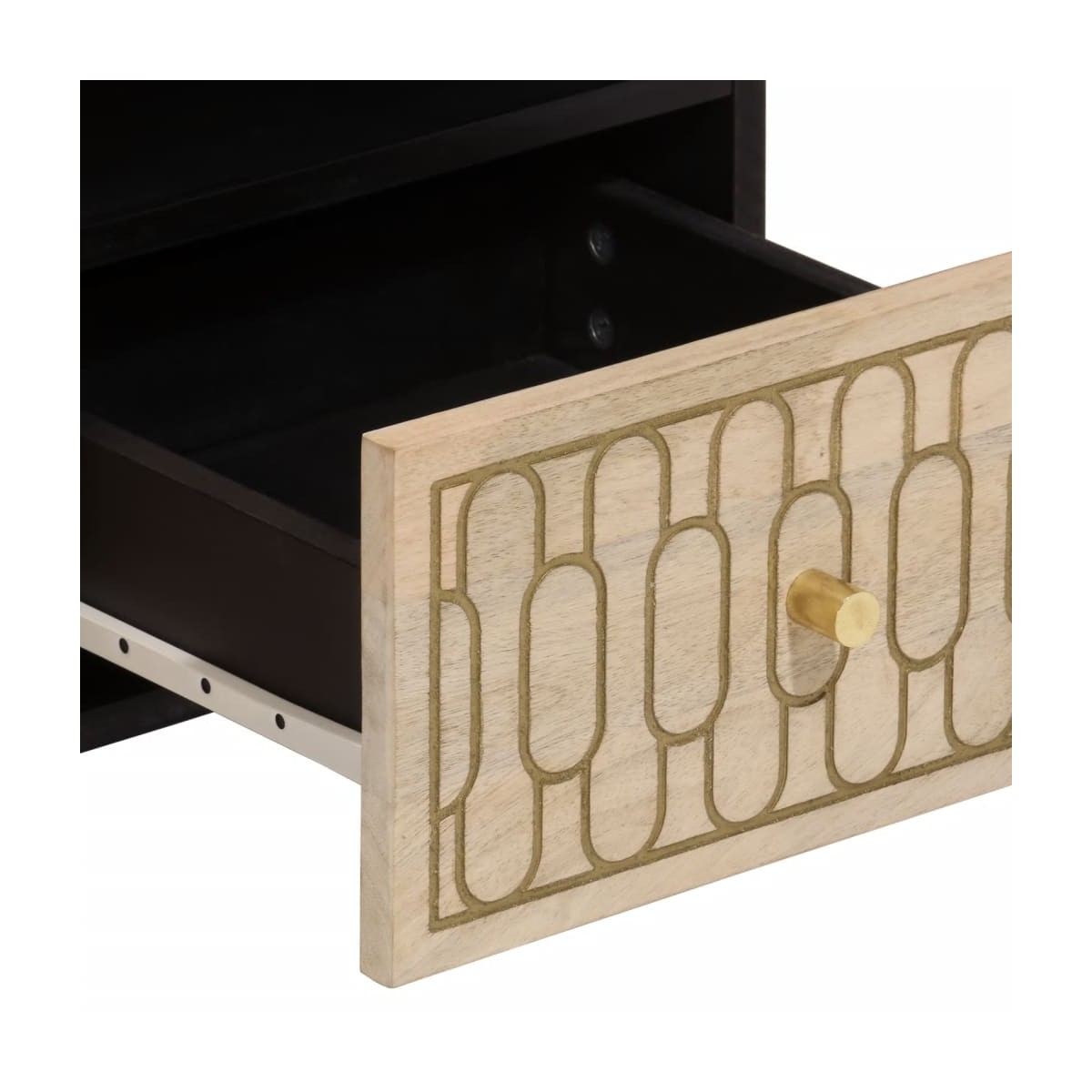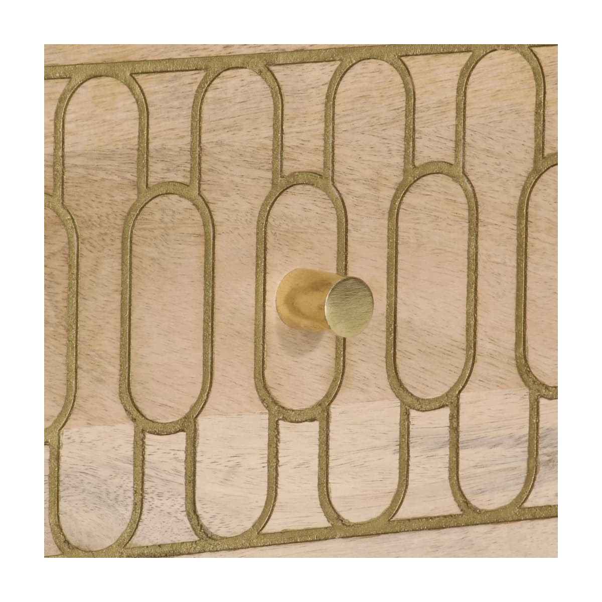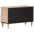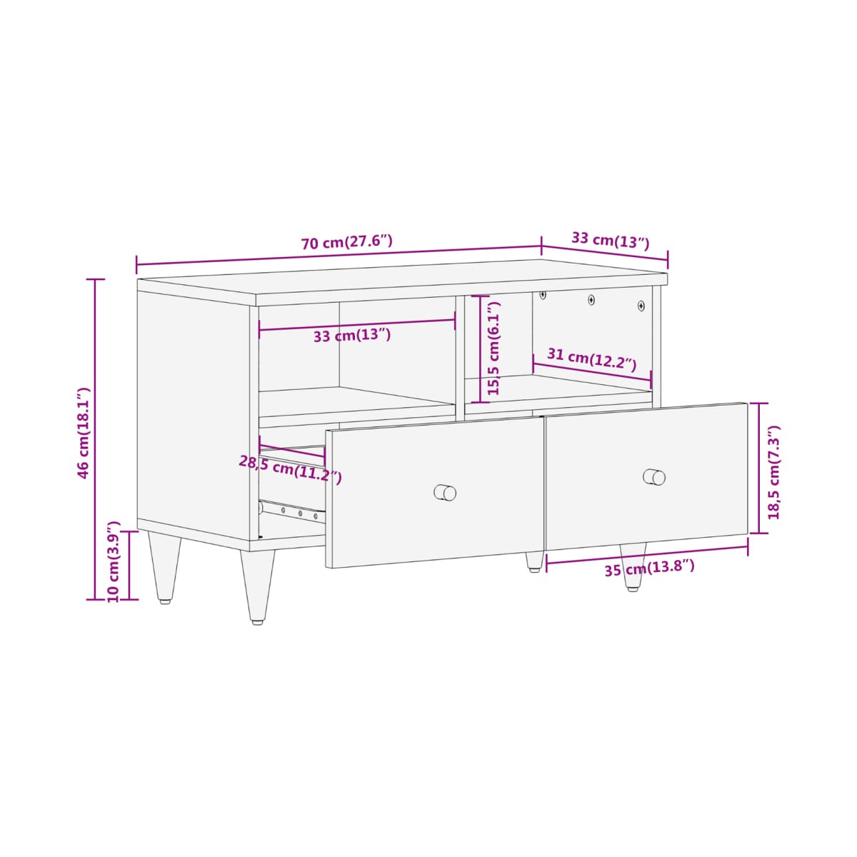 Este robusto mueble para TV está diseñado para ser el centro de atención de tu estancia, gracias a su diseño moderno a la par que práctico. Madera maciza de mango: La madera maciza de mango es una madera dura, tropical y resistente, que sirve para hacer muebles robustos. Las bonitas vetas de la madera hacen que cada mueble sea ligeramente diferente al resto. Hecho de madera maciza de mango, el mueble para el televisor es duradero y estable.Almacenamiento espacioso: El mueble de TV tiene un amplio espacio de almacenaje que lo convierte en un lugar ideal para guardar todas tus revistas, DVDs y otros artículos.Función expositora: La resistente superficie del mueble es ideal para exhibir objetos decorativos como marcos y plantas.Patas de madera: Las patas de madera dan al producto un look natural y agradable al mismo tiempo que garantizan la estabilidad. Combina bien con cualquier decoración de interior.Diseño tallado a mano: Este mueble de salón con patrones tallados a mano aporta el lujo de un encanto elegante a tu hogar, siendo el centro de atención de la estancia. Información útil:Cada artículo es único, con variaciones de color y veta. La entrega es aleatoria garantizando la exclusividad y la individualidad del producto.