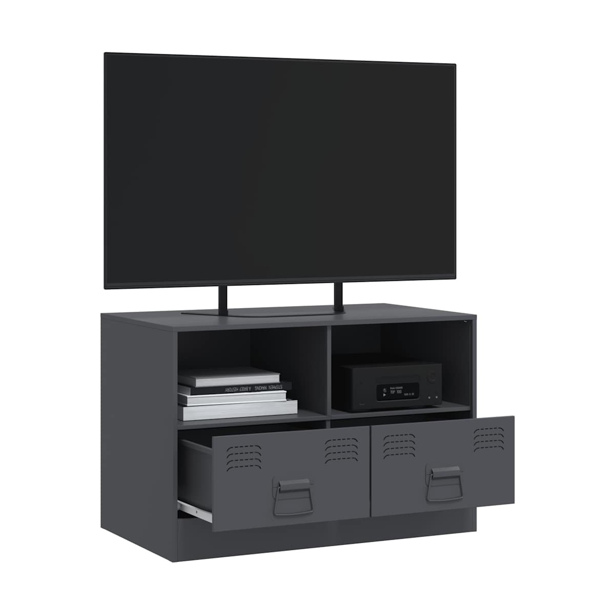 Este robusto mueble para TV está diseñado para ser el centro de atención de tu estancia, gracias a su diseño moderno a la par que práctico. Material estable: La estructura del mueble para TV está hecha de acero laminado en frío. El acero laminado en frío es un tipo de acero con bajo contenido en carbono producido mediante un método de laminación en frío y procesado a temperaturas ambiente cercanas a las normales. El acero laminado en frío tiene una superficie más lisa, mayor resistencia y mayor precisión.Amplio espacio de almacenaje: Este mueble ofrece un práctico espacio de almacenaje para mantener revistas, libros, mandos a distancia y otros objetos pequeños bien organizados y al alcance.Fácil de mantener: La mesa se limpia fácilmente con un paño húmedo y requiere menos mantenimiento.Tirador práctico: El mueble de TV viene con 2 tiradores que facilitan abrir y cerrar el mueble, además de añadir un toque de belleza.