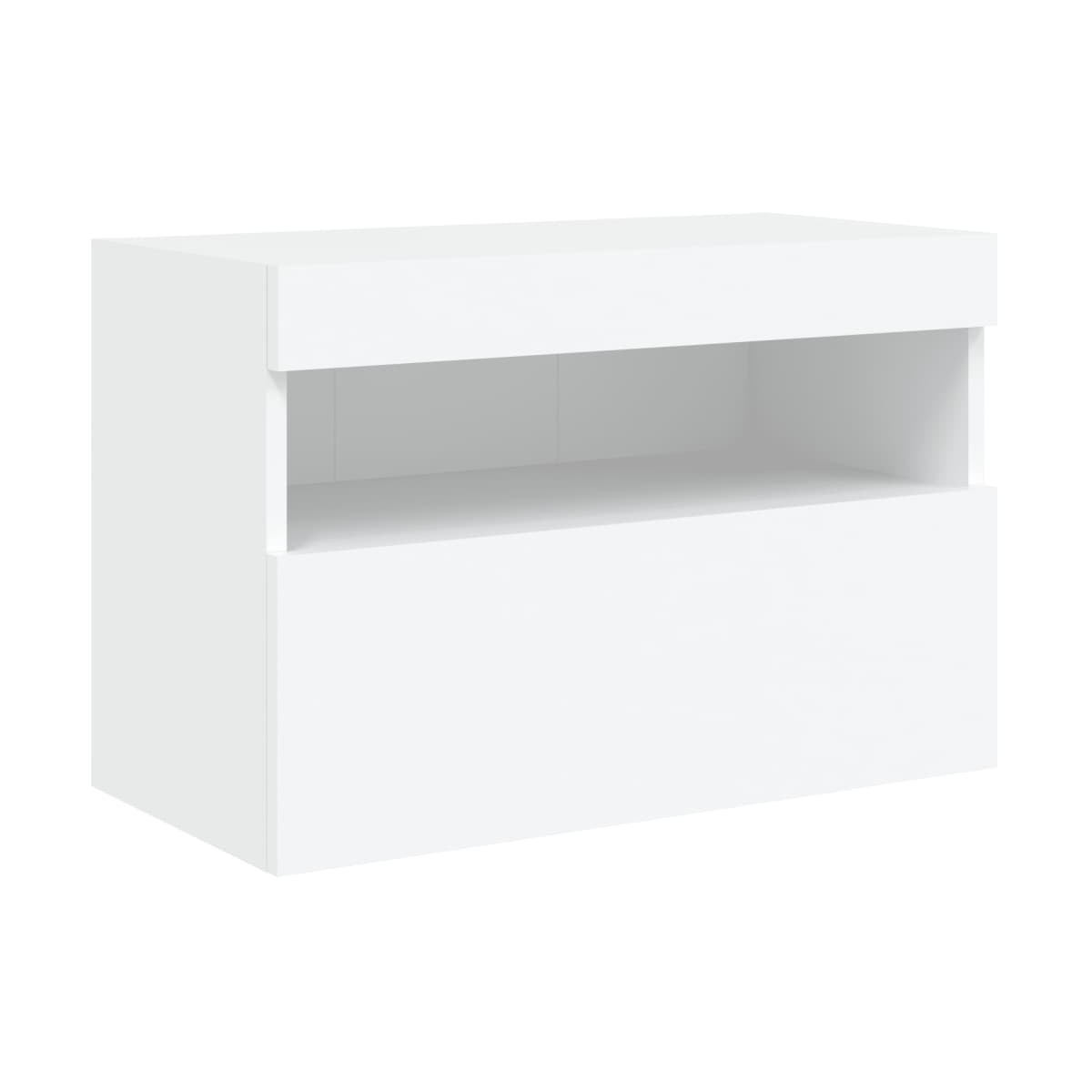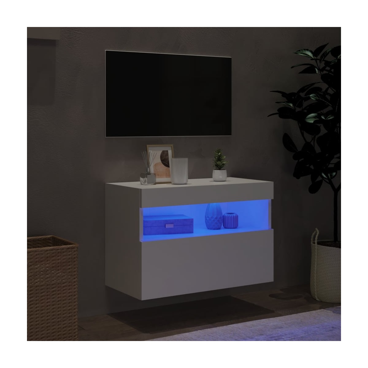 Este mueble de pared para TV es la solución perfecta para la casa, con el fin de maximizar el espacio y mantener el suelo despejado. Material duradero: La madera contrachapada tiene una calidad excepcional, con una superficie lisa y también cuenta con fuerza, estabilidad y resistencia a la humedad.Luces LED RGB: El mueble multimedia de pared está equipado con increíbles luces LED RGB. Con diversos menús personalizables, puedes cambiar el color de las luces sin esfuerzo e incluso hacer que se ajusten automáticamente. Estas luces LED no sólo realzan el aspecto moderno del mueble de TV flotante, sino que también le dan un toque a la moda.Amplio espacio de almacenaje: El mueble de pared para TV ofrece amplio espacio para mantener organizados y al alcance objetos pequeños, como libros, DVD y revistas.Versátil: El mueble es multiusos y puede utilizarse como mueble de pared para TV o como mesita de noche de pared. También puedes combinarlo con otros armarios para crear una impresionante pared en el salón.Diseño de pared: El armario con LED se puede montar en la pared para ganar un plus de espacio de almacenaje. De este modo, podrás aprovechar al máximo el espacio del suelo y mantener la zona limpia. Información útil:Los tornillos y los tacos para el interior de la pared no están incluidos. Recomendamos encontrar y utilizar tornillos y tacos adecuados específicamente para las paredes. Si no estás seguro, puedes consultar con un profesional. Lee y sigue cada paso de las instrucciones.El producto tiene un conector USB que necesita una fuente de alimentación USB certificada de 5 V (no incluida).