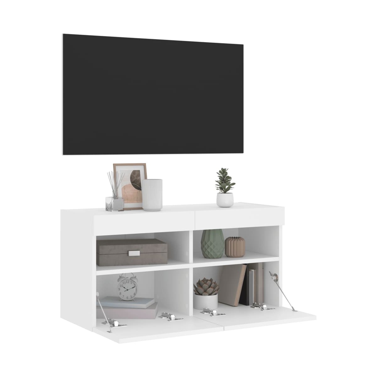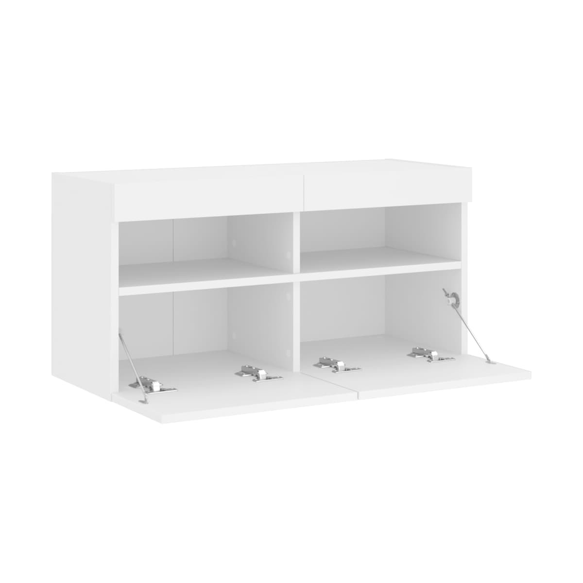 Este mueble de pared para TV es la solución perfecta para la casa, con el fin de maximizar el espacio y mantener el suelo despejado. Material duradero: La madera contrachapada tiene una calidad excepcional, con una superficie lisa y también cuenta con fuerza, estabilidad y resistencia a la humedad.Luces LED RGB: El mueble multimedia de pared está equipado con increíbles luces LED RGB. Con diversos menús personalizables, puedes cambiar el color de las luces sin esfuerzo e incluso hacer que se ajusten automáticamente. Estas luces LED no sólo realzan el aspecto moderno del mueble de TV flotante, sino que también le dan un toque a la moda.Amplio espacio de almacenaje: El mueble de pared para TV ofrece amplio espacio para mantener organizados y al alcance objetos pequeños, como libros, DVD y revistas.Diseño de pared: El armario con LED se puede montar en la pared para ganar un plus de espacio de almacenaje. De este modo, podrás aprovechar al máximo el espacio del suelo y mantener la zona limpia. Información útil:Los tornillos y los tacos para el interior de la pared no están incluidos. Recomendamos encontrar y utilizar tornillos y tacos adecuados específicamente para las paredes. Si no estás seguro, puedes consultar con un profesional. Lee y sigue cada paso de las instrucciones.El producto tiene un conector USB que necesita una fuente de alimentación USB certificada de 5 V (no incluida).