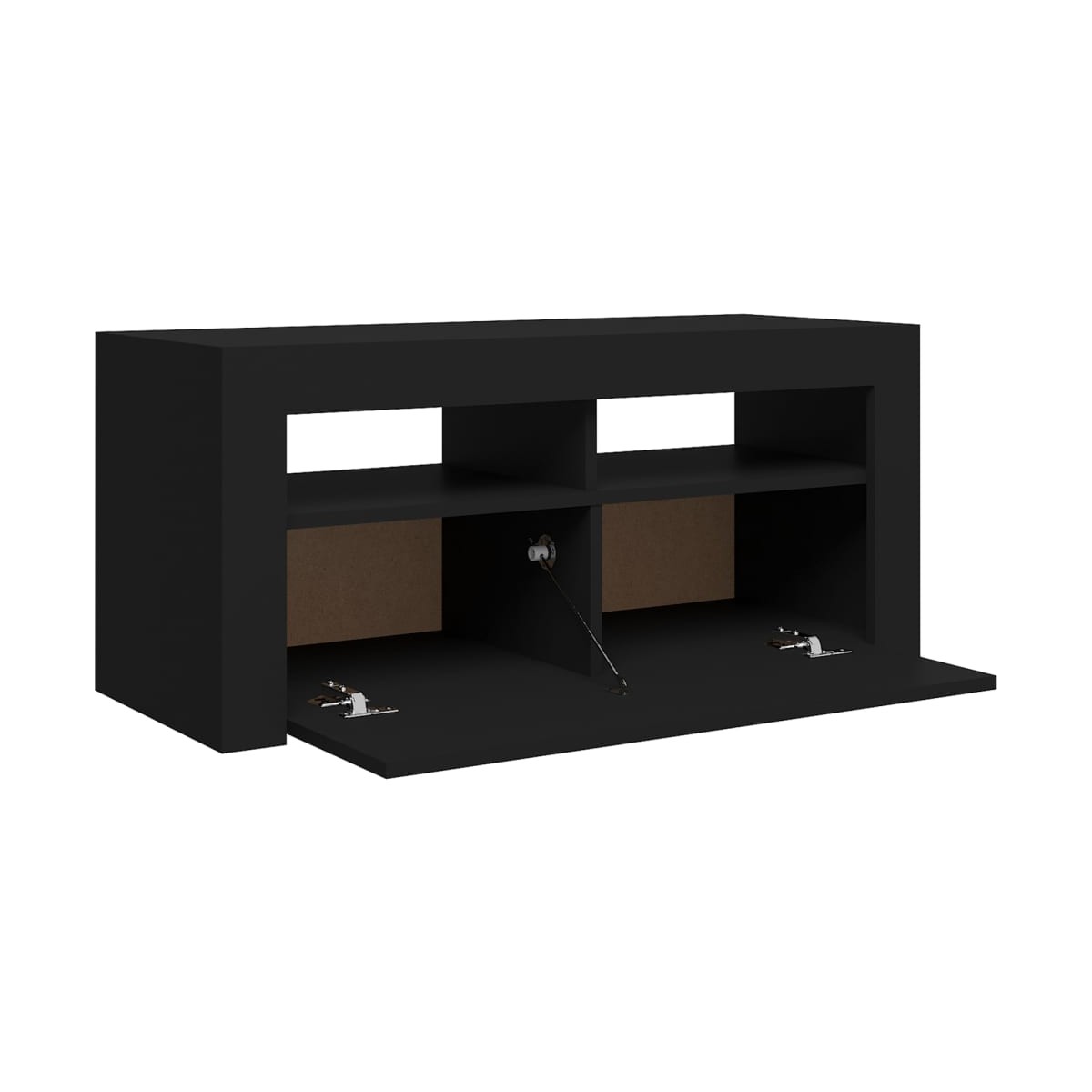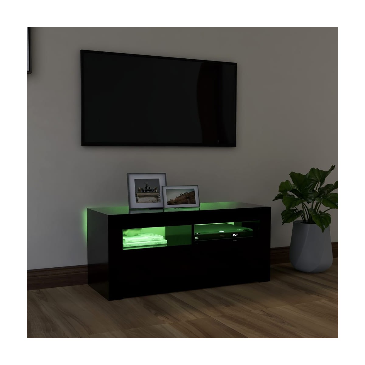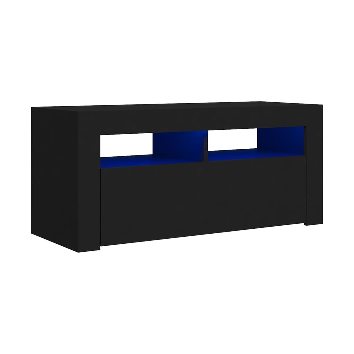 Con un diseño moderno y práctico, este mueble para la TV con luces LED definitivamente se conviertirá en el centro de atención de tu habitación. La construcción resistente de este mueble de televisor lo hace muy duradero. Tiene un amplio espacio para que puedas guardar tu reproductor de DVD, tu videoconsola, tu dispositivo de streaming y tus soportes multimedia de forma ordenada. Este soporte para TV cuenta con luces LED RGB, que tienen diferentes menús para cambiar el color de las luces y permitir que el color se ajuste automáticamente de manera diferente. Las luces LED subrayan el aspecto moderno y contribuyen a la sensación de moda. Además, este set es fácil de limpiar con un paño húmedo. Nota:El producto tiene un conector USB, pero no se incluye la fuente de alimentación USB de 5 V certificada.