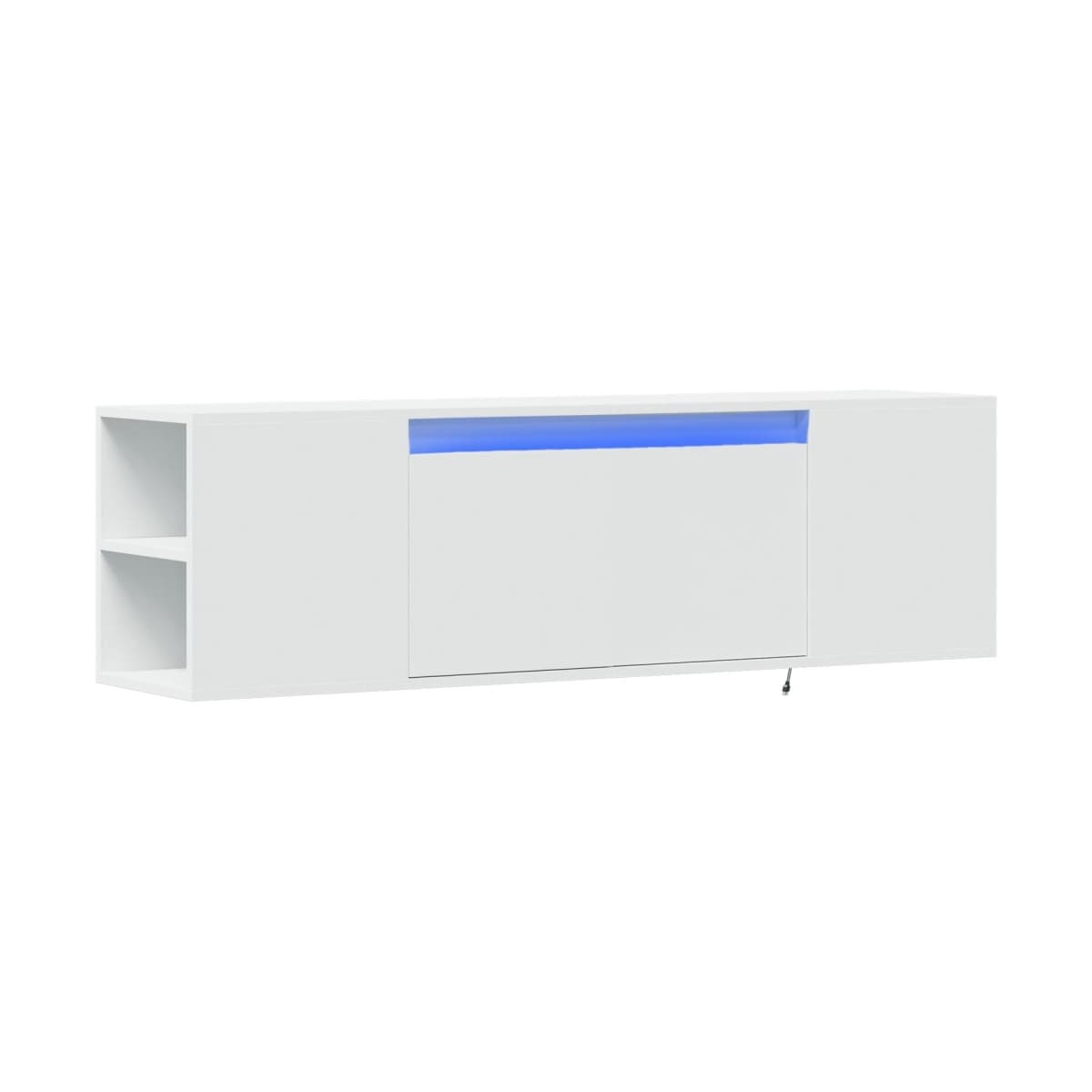 Este mueble de TV de pared es la solución perfecta para la casa, con el fin de maximizar el espacio y mantener el suelo despejado.Material estable y duradero: La madera de ingeniería es un material duradero y estable con una superficie lisa que es resistente a la humedad, la deformación y la rotura, lo que la convierte en una opción fiable para una variedad de proyectos.Luces LED RGB para un ambiente agradable: Este armario de TV cuenta con luces LED que se pueden ajustar fácilmente para crear un espectáculo de luces personalizado. Puedes personalizar los modos, los colores y el brillo para mejorar el ambiente de tu hogar.Amplio espacio de almacenamiento: Este soporte de TV tiene 2 cajones, lo que proporciona un amplio espacio para guardar sus elementos esenciales diarios, como libros, DVD, revistas, suministros multimedia y otros artículos, perfectamente organizados y al alcance de la mano.Ahorro de espacio: El diseño de pared aprovecha al máximo el espacio no utilizado de la pared, convirtiéndolo en una zona de almacenamiento compacta y eficiente.Diseño DIY: El mueble de TV flotante ofrece infinitas opciones de diseño, lo que te permite utilizarlo solo o combinarlo con otros muebles altos de TV para crear un centro de entretenimiento completo.Información útil:Los tornillos y los tacos para el interior de la pared no están incluidos. Te recomendamos buscar y utilizar tornillos y tacos adecuados específicamente para tus paredes. Si no estás seguro, puedes consultar con un profesional. Lee y sigue cada paso de las instrucciones.El producto tiene un conector USB que necesita una fuente de alimentación USB certificada de 5 V (no incluida).