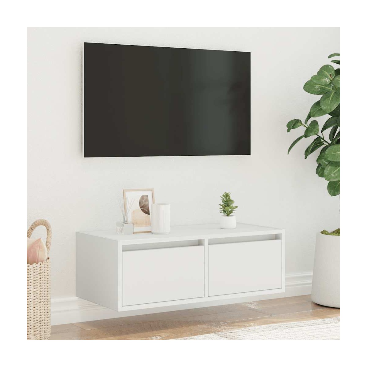 Con un diseño elegante y práctico, este mueble de TV con luces LED se convertirá en el centro de atención de la estancia. Material estable y duradero: La madera de ingeniería es un material duradero y estable con una superficie lisa que es resistente a la humedad, la deformación y la rotura, lo que la convierte en una opción fiable para una variedad de proyectos.Amplio espacio de almacenamiento: Este mueble de TV proporciona un amplio espacio de almacenamiento para mantener tus revistas, libros, DVD y dispositivos multimedia bien organizados y al alcance de la mano.Luces LED RGB para un ambiente agradable: Este armario cuenta con luces LED que se pueden ajustar fácilmente para crear un espectáculo de luces personalizado. Puedes personalizar los modos, los colores y el brillo para mejorar el ambiente de tu hogar.Ahorro de espacio: el mueble de TV se puede montar en la pared para añadir espacio de almacenamiento adicional. De esa manera, puedes maximizar el espacio del suelo y mantener el área limpia.Fácil de mantener: El soporte del televisor es fácil de limpiar con un paño húmedo y requiere menos mantenimiento. Información útil:Los tornillos y los tacos para el interior de la pared no están incluidos. Recomendamos encontrar y utilizar tornillos y tacos adecuados específicamente para las paredes. Si no estás seguro, puedes consultar con un profesional. Lee y sigue cada paso de las instrucciones.El producto tiene un conector USB que necesita una fuente de alimentación USB certificada de 5 V (no incluida).