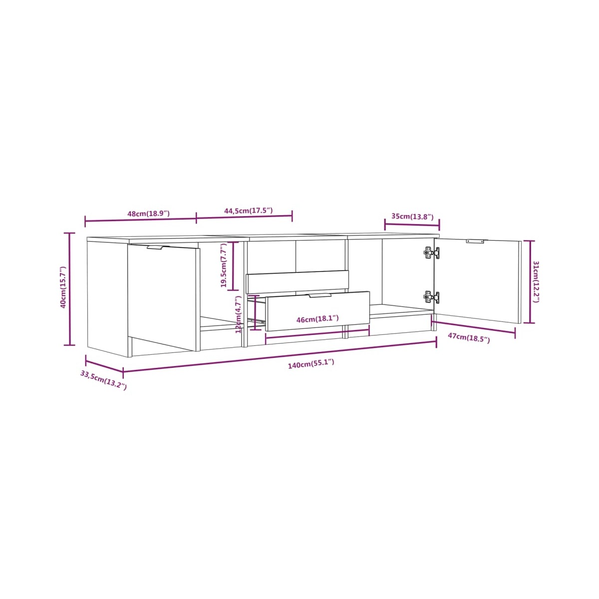 El moderno mueble de TV es un aporte funcional e ideal para crear un interior atractivo y moderno. Material de primera calidad: La madera contrachapada tiene una calidad excepcional, con una superficie lisa y también cuenta con fuerza, estabilidad y resistencia a la humedad.Amplio espacio de almacenamiento: El mueble para equipos de música cuenta con tres compartimento y un cajón para mantener ordenados los reproductores de DVD, las videoconsolas, los dispositivos de transmisión y los soportes multimedia.Superficie robusta: El soporte para TV tiene una superficie resistente, ideal para exponer objetos decorativos, marcos de fotos, macetas, etc.