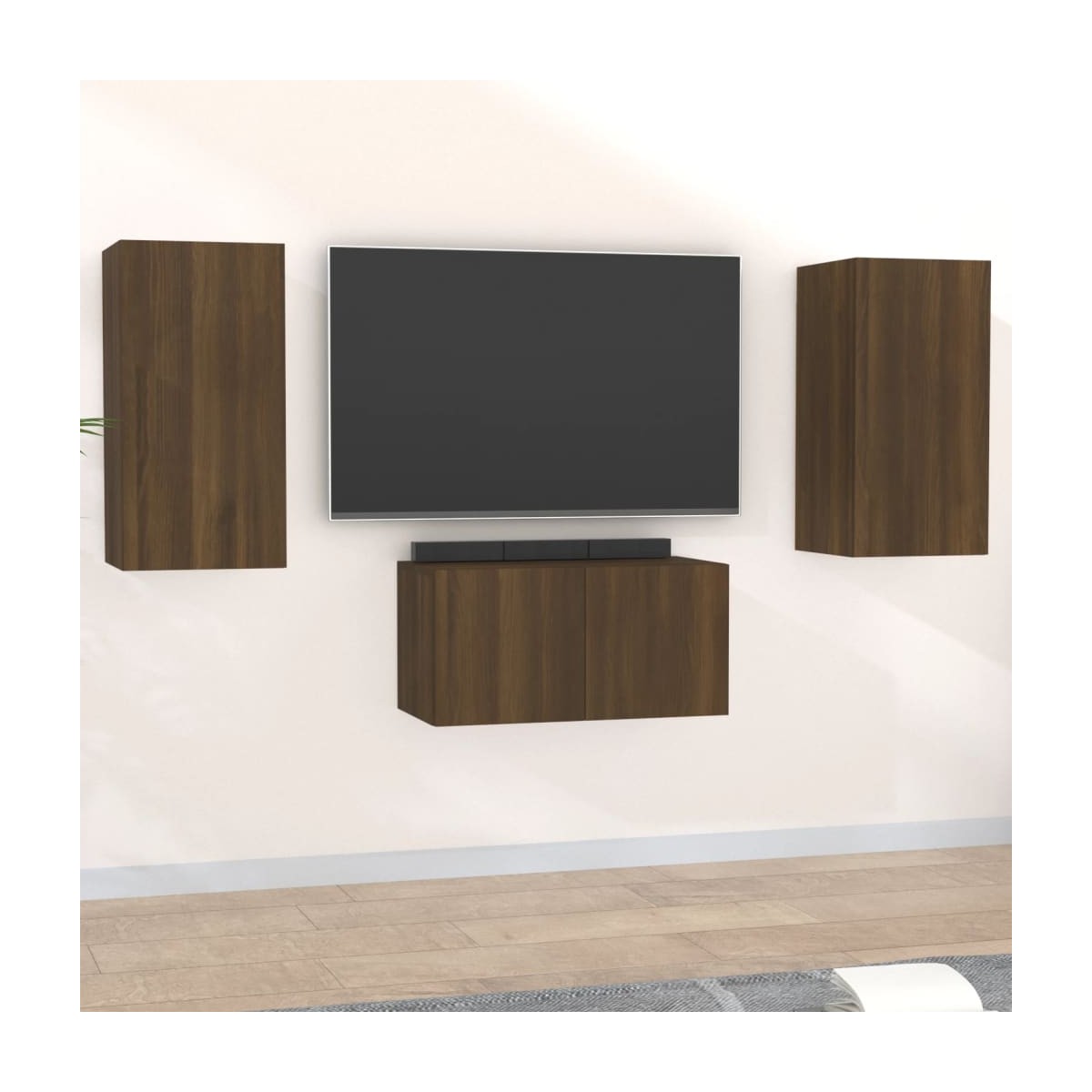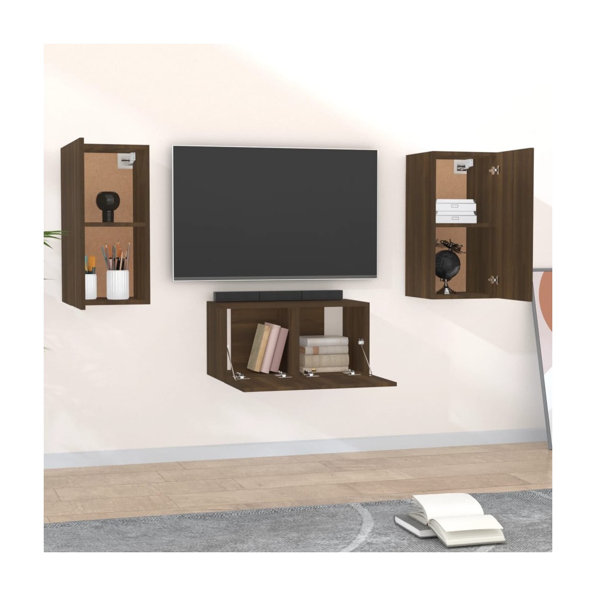 Este set de muebles de TV clásico está diseñado para ser el centro de atención de tu estancia, gracias a su diseño moderno a la par que práctico. Material robusto: La madera contrachapada tiene una calidad excepcional, con una superficie lisa y también cuenta con fuerza, estabilidad y resistencia a la humedad.Amplio espacio de almacenamiento: Cada mueble para TV ofrece un amplio espacio de almacenamiento para mantener todas revistas, DVD y cualquier otro artículo bien organizados.Montaje en la pared: Estos muebles para TV no ocupan espacio en el suelo. Puedes colgarlo en la pared fácilmente. Nota:Los tornillos y los tacos para el interior de la pared no están incluidos. Busca y utiliza tornillos y tacos adecuados para tus paredes. Si no lo tienes claro, busca asesoramiento profesional. Lee y sigue cada paso de las instrucciones cuidadosamente.Cada producto viene con un manual de montaje en la caja para facilitar el montaje.