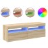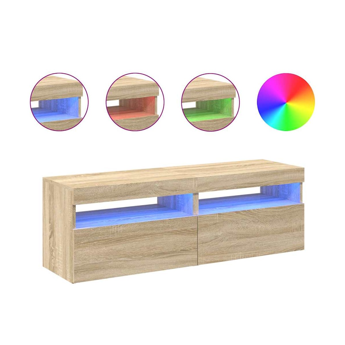 Con un diseño moderno y práctico, este mueble para la TV con luces LED definitivamente se conviertirá en el centro de atención de tu habitación. La construcción resistente de este mueble de televisor lo hace muy duradero. Tiene un amplio espacio para que puedas guardar tu reproductor de DVD, tu videoconsola, tu dispositivo de streaming y tus soportes multimedia de forma ordenada. Este soporte para TV cuenta con luces LED RGB, que tienen diferentes menús para cambiar el color de las luces y permitir que el color se ajuste automáticamente de manera diferente. Las luces LED subrayan el aspecto moderno y contribuyen a la sensación de moda. Además, este mueble de TV es fácil de limpiar con un paño húmedo. Nota:El producto tiene un conector USB, pero no se incluye la fuente de alimentación USB de 5 V certificada.