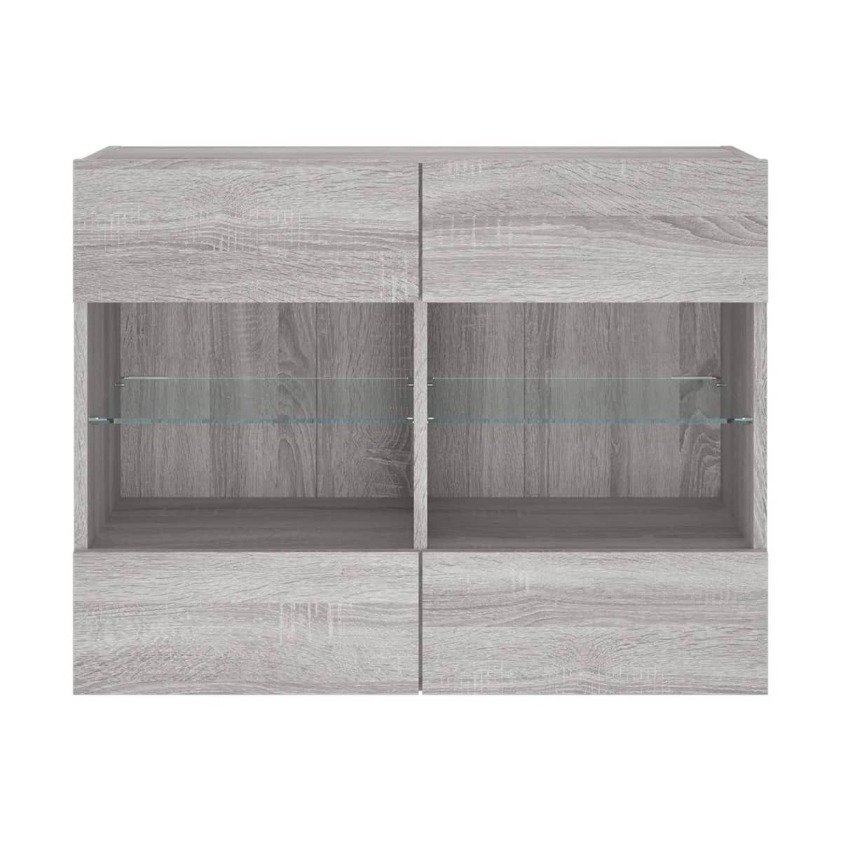 Este mueble de pared para TV es la solución perfecta para la casa, con el fin de maximizar el espacio y mantener el suelo despejado. Material duradero: La madera contrachapada tiene una calidad excepcional, con una superficie lisa y también cuenta con fuerza, estabilidad y resistencia a la humedad.Luces LED RGB: El mueble multimedia de pared está equipado con increíbles luces LED RGB. Con diversos menús personalizables, puedes cambiar el color de las luces sin esfuerzo e incluso hacer que se ajusten automáticamente. Estas luces LED no sólo realzan el aspecto moderno del mueble de TV flotante, sino que también le dan un toque a la moda.Amplio espacio de almacenaje: El mueble para TV de pared tiene 2 estantes de vidrio y 4 compartimentos detrás de las puertas que ofrecen un amplio espacio para mantener organizadas y al alcance objetos pequeños, como libros, DVD y revistas.Versátil: El mueble es multiusos y puede utilizarse como mueble de pared para TV o como mesita de noche de pared. También puedes combinarlo con otros armarios para crear una impresionante pared en el salón.Diseño de pared: El armario con LED se puede montar en la pared para ganar un plus de espacio de almacenaje. De este modo, podrás aprovechar al máximo el espacio del suelo y mantener la zona limpia. Información útil:Los tornillos y los tacos para el interior de la pared no están incluidos. Recomendamos encontrar y utilizar tornillos y tacos adecuados específicamente para las paredes. Si no estás seguro, puedes consultar con un profesional. Lee y sigue cada paso de las instrucciones.El producto tiene un conector USB que necesita una fuente de alimentación USB certificada de 5 V (no incluida).