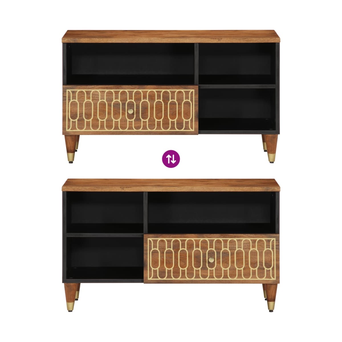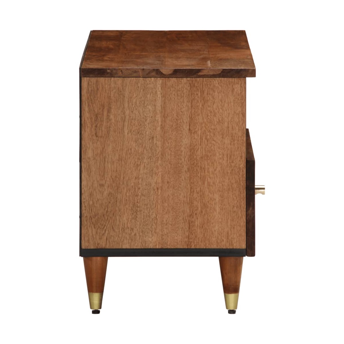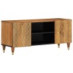 Este robusto mueble para TV está diseñado para ser el centro de atención de tu estancia, gracias a su diseño moderno a la par que práctico. Madera maciza de mango: La madera maciza de mango es una madera dura, tropical y resistente, que sirve para hacer muebles robustos. Las bonitas vetas de la madera hacen que cada mueble sea ligeramente diferente al resto. Hecho de madera maciza de mango, el mueble para el televisor es duradero y estable.Almacenamiento espacioso: El mueble de TV tiene un amplio espacio de almacenaje que lo convierte en un lugar ideal para guardar todas tus revistas, DVDs y otros artículos.Función expositora: La resistente superficie del mueble es ideal para exhibir objetos decorativos como marcos y plantas.Patas robustas: Las patas de hierro aumentan la robustez y la estabilidad del mueble multimedia.Estilo retro: Esta mesita de noche con motivos florales tallados a mano aporta el lujo del estilo retro a tu decoración, siendo el foco de atención de tu habitación. Información útil:Cada artículo es único, con variaciones de color y veta. La entrega es aleatoria garantizando la exclusividad y la individualidad del producto.