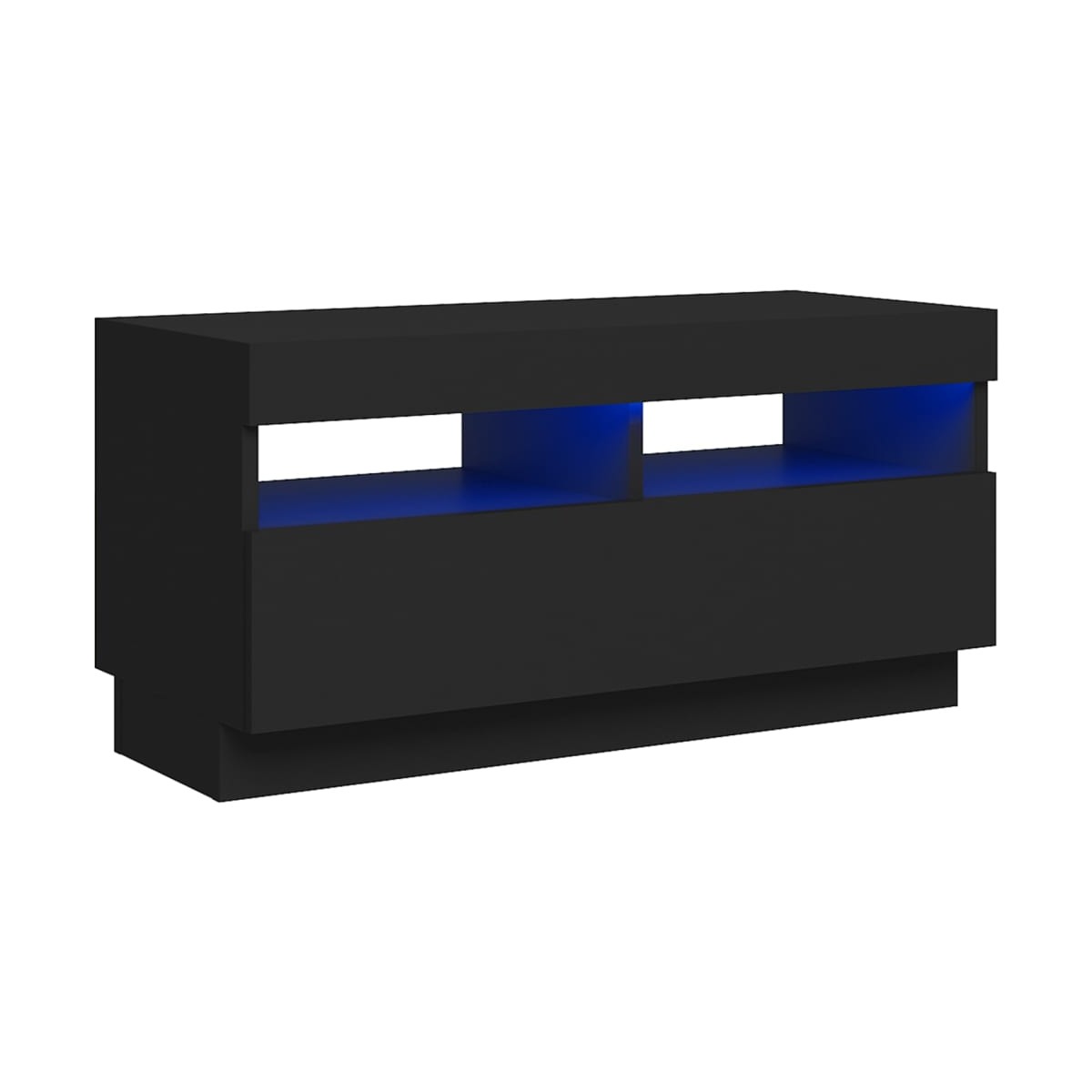 Con un diseño moderno y práctico, este mueble para la TV con luces LED definitivamente se convierte en el centro de atención de tu habitación. La construcción resistente de este mueble de televisor lo hace muy duradero. Tiene un amplio espacio para que puedas guardar tu reproductor de DVD, tu videoconsola, tu dispositivo de streaming y tus soportes multimedia de forma ordenada. Este soporte para TV cuenta con luces LED RGB, que tienen diferentes menús para cambiar el color de las luces y permitir que el color se ajuste automáticamente de manera diferente. Las luces LED subrayan el aspecto moderno y contribuyen a la sensación de moda. Además, este set es fácil de limpiar con un paño húmedo. Nota:El producto tiene un conector USB, pero no se incluye la fuente de alimentación USB de 5 V certificada.