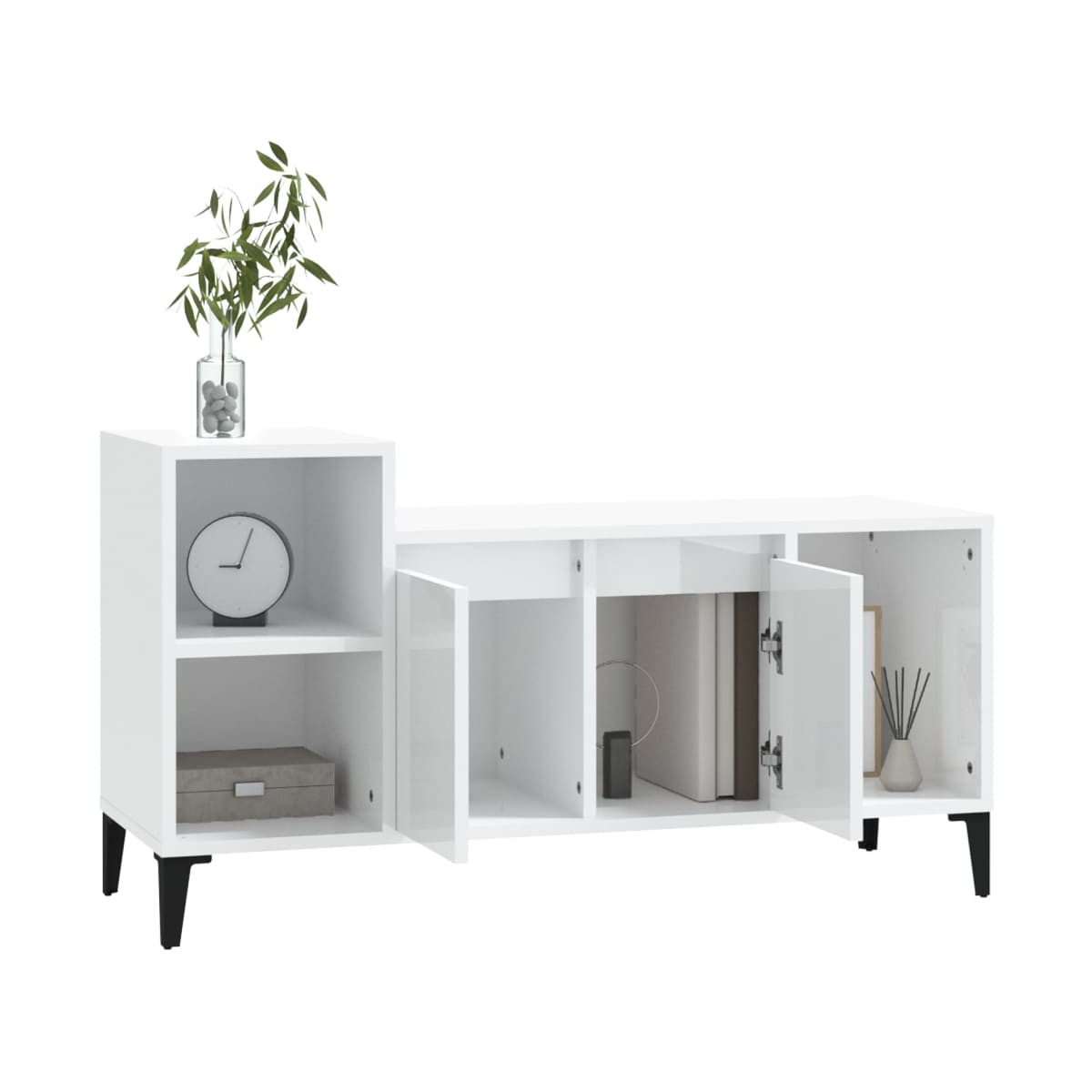 Este clásico mueble de TV es un aporte práctico y llamativo para tu hogar. Material robusto: La madera contrachapada tiene una calidad excepcional, con una superficie lisa y también cuenta con fuerza, estabilidad y resistencia a la humedad.Amplio espacio de almacenamiento: El mueble para equipos de música cuenta con puertas y compartimentos para tener al alcance y bien organizados los reproductores de DVD, las videoconsolas, los dispositivos de streaming y los soportes multimedia.Superficie robusta: La superficie de este mueble es el lugar ideal para colocar artículos como libros y adornos. Advertencia: Para evitar el vuelco, este producto debe usarse con el dispositivo provisto para fijarlo a la pared. Nota:Cada producto viene con un manual de montaje en la caja para facilitar el montaje.