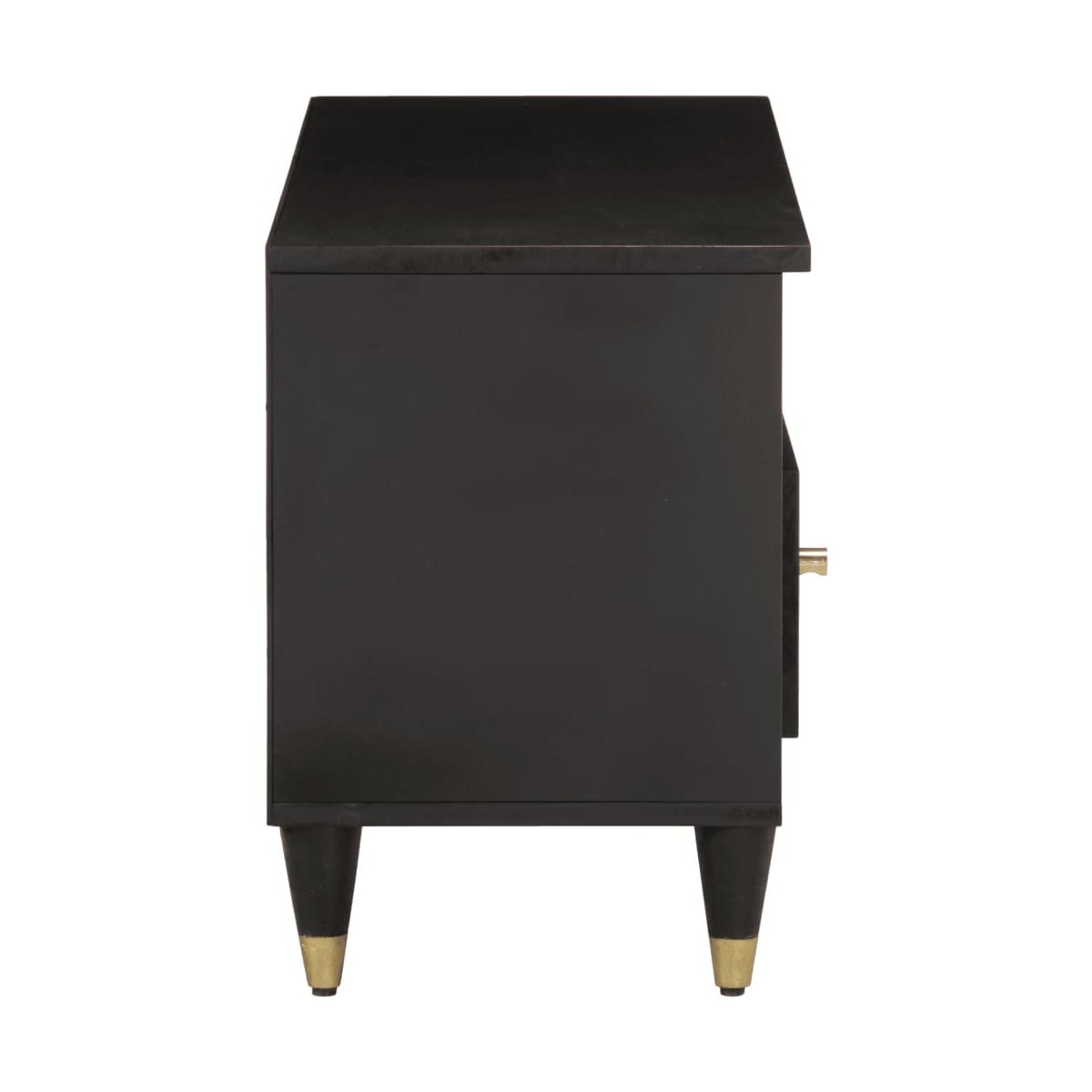 Este robusto mueble para TV está diseñado para ser el centro de atención de tu estancia, gracias a su diseño moderno a la par que práctico. Madera maciza de mango: La madera maciza de mango es una madera dura, tropical y resistente, que sirve para hacer muebles robustos. Las bonitas vetas de la madera hacen que cada mueble sea ligeramente diferente al resto. Hecho de madera maciza de mango, el mueble para el televisor es duradero y estable.Almacenamiento espacioso: El mueble de TV tiene un amplio espacio de almacenaje que lo convierte en un lugar ideal para guardar todas tus revistas, DVDs y otros artículos.Función expositora: La resistente superficie del mueble es ideal para exhibir objetos decorativos como marcos y plantas.Patas robustass: Las patas de hierro añaden robustez y estabilidad al mueble de TV.Estilo retro: Esta mesita de noche con motivos florales tallados a mano aporta el lujo del estilo retro a tu decoración, siendo el foco de atención de tu habitación. Información útil:Cada artículo es único, con variaciones de color y veta. La entrega es aleatoria garantizando la exclusividad y la individualidad del producto.