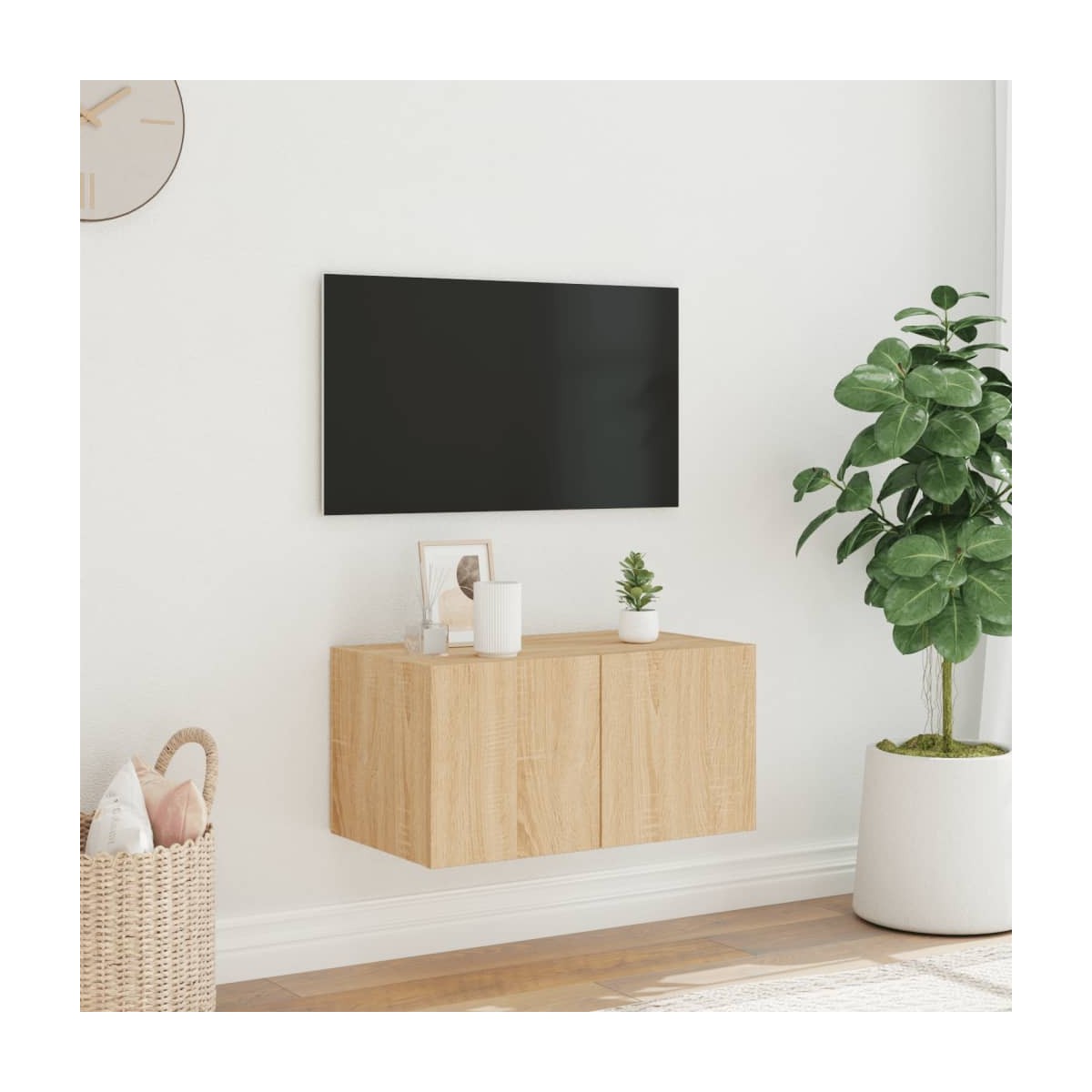 Este mueble de TV de pared es la solución perfecta para la casa, con el fin de maximizar el espacio y mantener el suelo despejado. Material duradero: La madera de ingeniería tiene una calidad excepcional, con una superficie lisa y también cuenta con fuerza, estabilidad y resistencia a la humedad.Luces LED RGB: El mueble multimedia de pared está equipado con increíbles luces LED RGB. Con diversos menús personalizables, puedes cambiar el color de las luces sin esfuerzo e incluso hacer que se ajusten automáticamente. Estas luces LED no sólo realzan el aspecto moderno del mueble de TV flotante, sino que también le dan un toque a la moda.Amplio espacio de almacenaje: El mueble para TV de pared tiene 2 compartimentos detrás de las puertas que ofrecen un amplio espacio para mantener organizadas y al alcance objetos pequeños, como libros, DVD y revistas.Versátil: El mueble es multiusos y puede utilizarse como mueble de pared para TV o como mesita de noche de pared. También puedes combinarlo con otros armarios para crear una impresionante pared en el salón.Diseño de pared: El armario con LED se puede montar en la pared para ganar un plus de espacio de almacenaje. De este modo, podrás aprovechar al máximo el espacio del suelo y mantener la zona limpia. Información útil:Los tornillos y los tacos para el interior de la pared no están incluidos. Recomendamos encontrar y utilizar tornillos y tacos adecuados específicamente para las paredes. Si no estás seguro, puedes consultar con un profesional. Lee y sigue cada paso de las instrucciones.El producto tiene un conector USB que necesita una fuente de alimentación USB certificada de 5 V (no incluida).