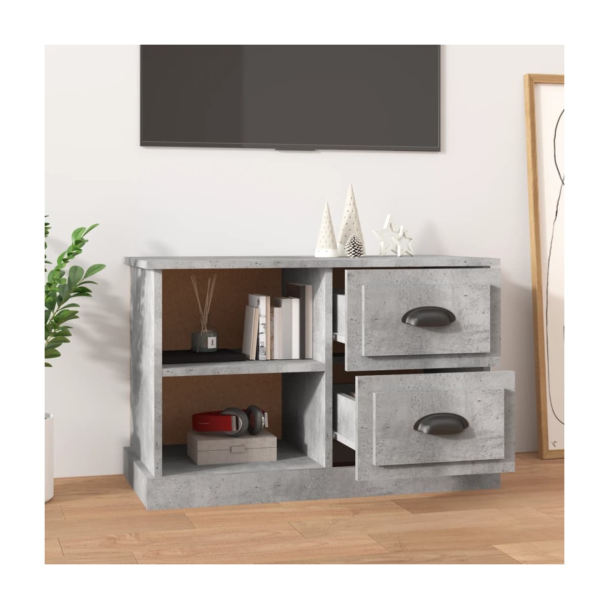 Este moderno mueble de TV, con un diseño fino y elegante, está destinado a ser un complemento decorativo y práctico para la decoración de la casa. Material duradero: La madera contrachapada tiene una calidad excepcional, con una superficie lisa y también cuenta con fuerza, estabilidad y resistencia a la humedad.Amplio espacio de almacenamiento: El mueble de TV tiene 2 cajones y 2 compartimentos abiertos, por lo que ofrece un amplio espacio de almacenamiento para mantener tus básicos diarios bien organizados y al alcance.Función expositora: La resistente superficie de este soporte de TV es el lugar perfecto para poner plantas, fotos enmarcadas y otros objetos decorativos.Instalación flexible: Los cajones se pueden instalar a la derecha o la izquierda de forma flexible. Información útil:Para facilitar al máximo el montaje, cada producto se entrega con un manual.