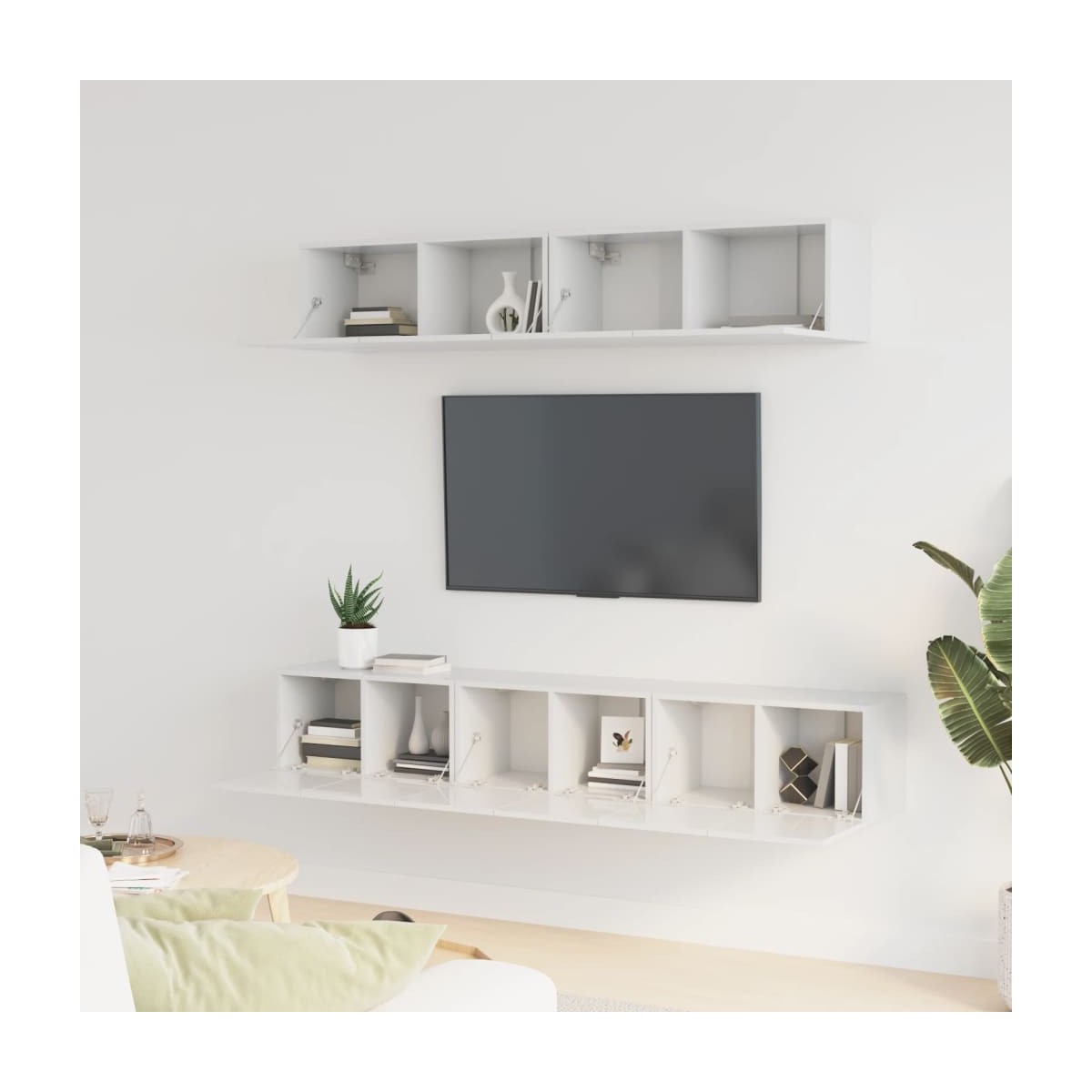 Este set de muebles de TV clásico está diseñado para ser el centro de atención de tu estancia, gracias a su diseño moderno a la par que práctico. Material robusto: La madera contrachapada tiene una calidad excepcional, con una superficie lisa y también cuenta con fuerza, estabilidad y resistencia a la humedad. Hechos de madera contrachapada, estos muebles de TV son fáciles de limpiar.Amplio espacio de almacenamiento: Estos muebles de TV ofrecen un amplio espacio de almacenamiento para mantener todas tus revistas, DVD y cualquier otro artículo bien organizados.Diseño montado en la pared: El armario multimedia no ocupa espacio en el suelo. Puedes colgarlo en la pared fácilmente.Puertas prácticas: Mantén tus objetos esenciales libres de polvo al ocultarlos detrás de la puerta del armario Nota:Los tornillos y los tacos para el interior de la pared no están incluidos. Busca y utiliza tornillos y tacos adecuados para tus paredes. Si no lo tienes claro, busca asesoramiento profesional. Lee y sigue cada paso de las instrucciones cuidadosamente.Cada producto viene con un manual de montaje en la caja para facilitar el montaje.